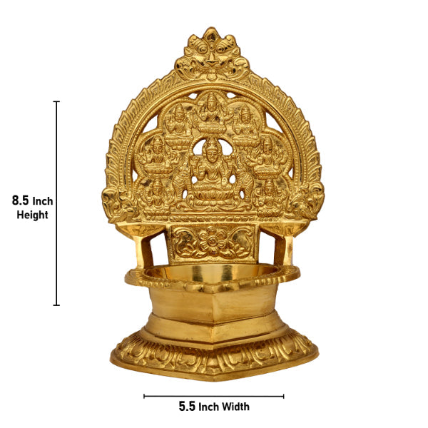 Ashtalakshmi Vilakku - 8.5 Inches | Ashtalakshmi Deepam/ Brass Lamp for Pooja/ 1.340 Kgs Approx