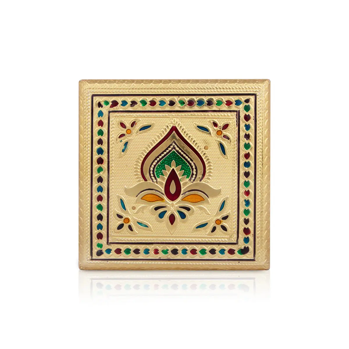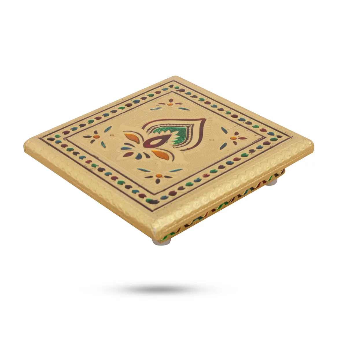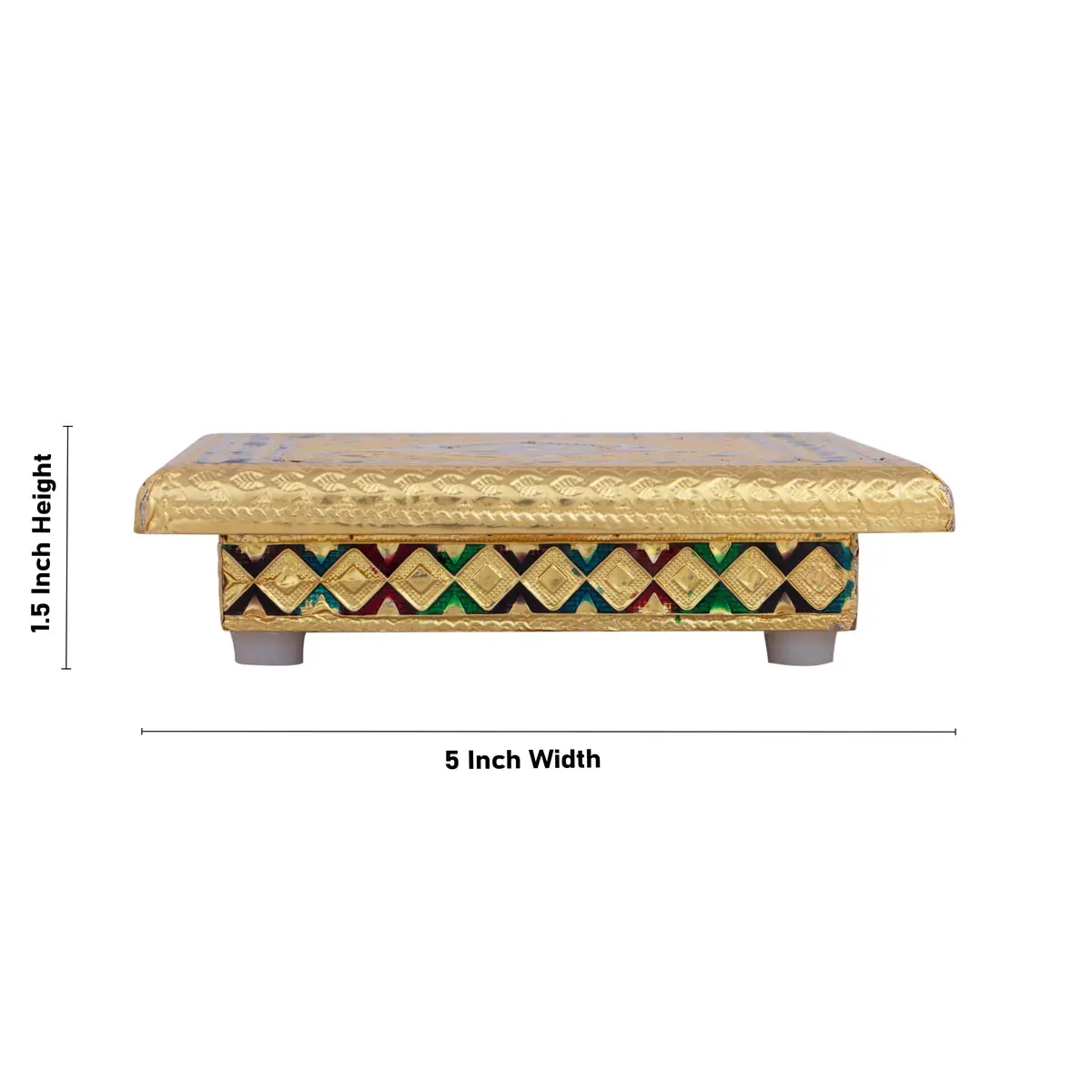 Bajot - 1.5 x 5 x 5 Inches | Meenakari Design Wooden Chowki/ Golden Polish Manai Palagai for Pooja