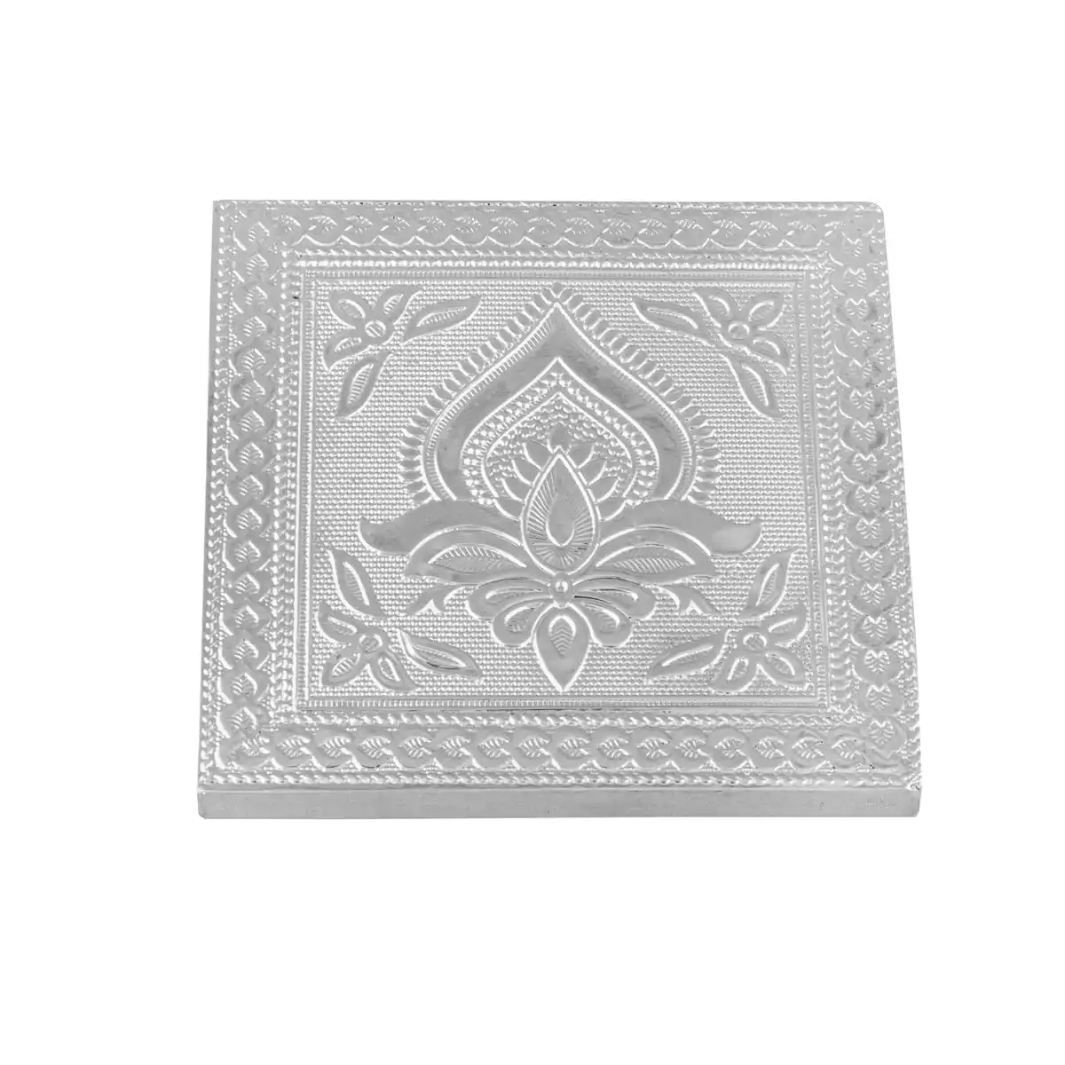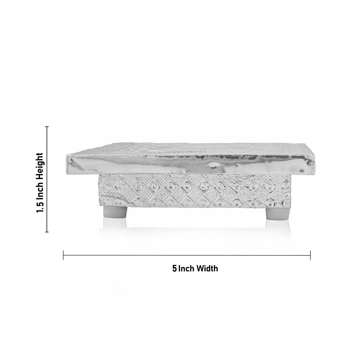 Bajot - 1.5 x 5 x 5 Inches | Silver Polish Chowki/ Wooden Manai Palagai/ Patla for Pooja
