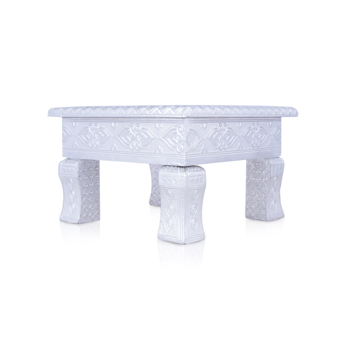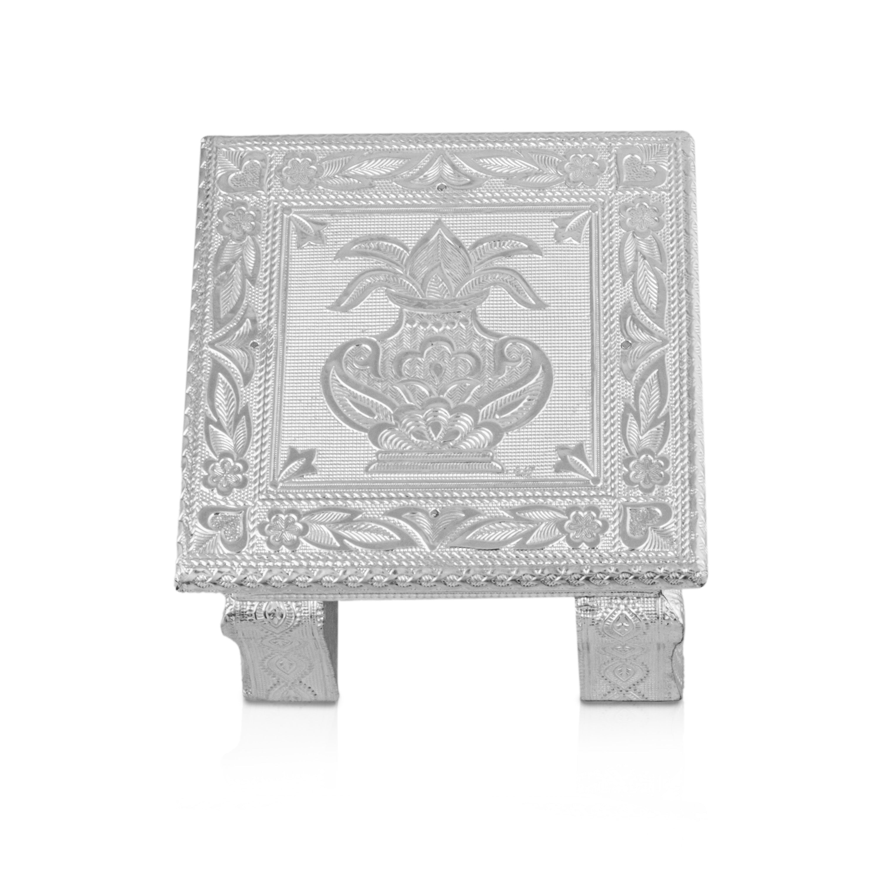 Bajot - 8 x 8 Inches | Wooden Manai/ Gold Polish Meenakari Design Chowki for Pooja
