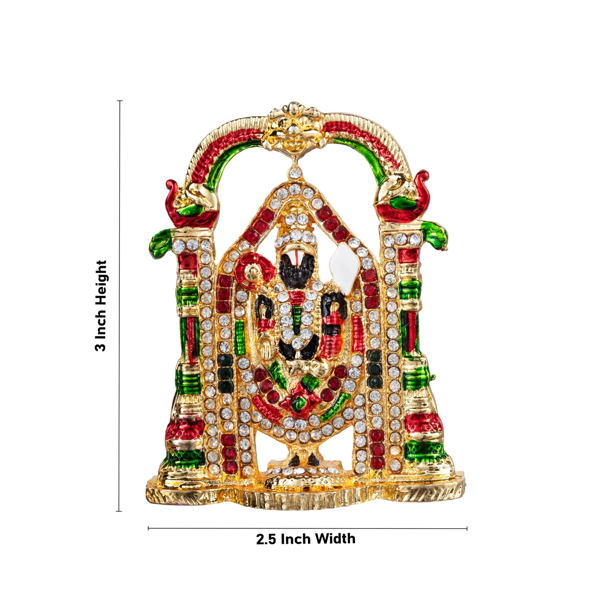 Balaji Murti With Arch - 3 x 2.5 Inches | Multicolour Stone Balaji Idol/ Gold Polish Balaji Statue for Car/ 60 Gms