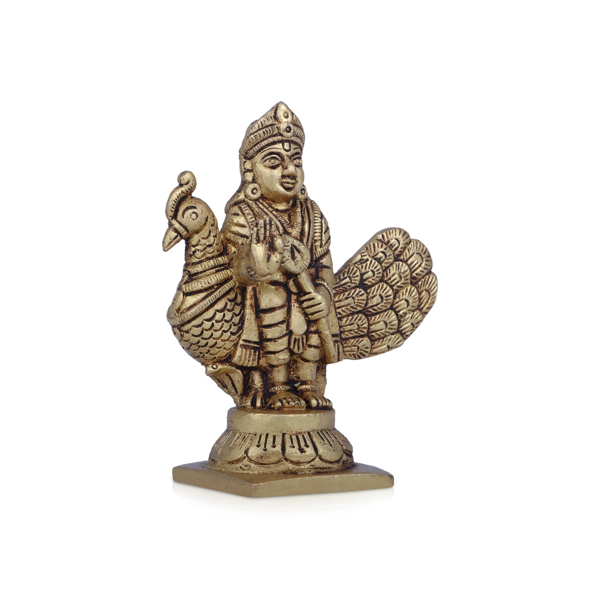 Balamurugan Statue - 3.75 x 3.5 Inches | Antique Brass Idol/ Bala Murugan Statue for Pooja/ 390 Gms Approx