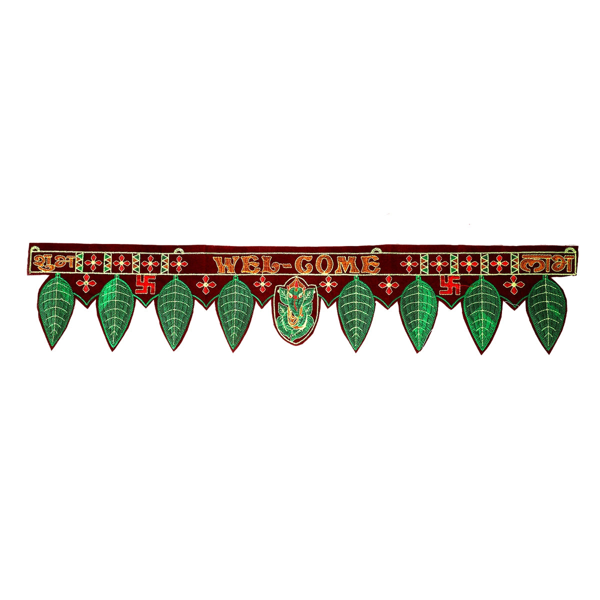 Bandanwar - 38 Inches | Leaf Design Toran/ Velvet Thoranam for Door Decor