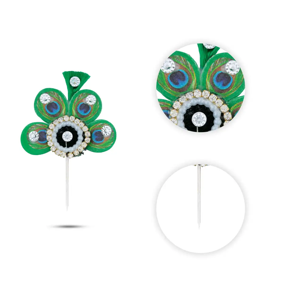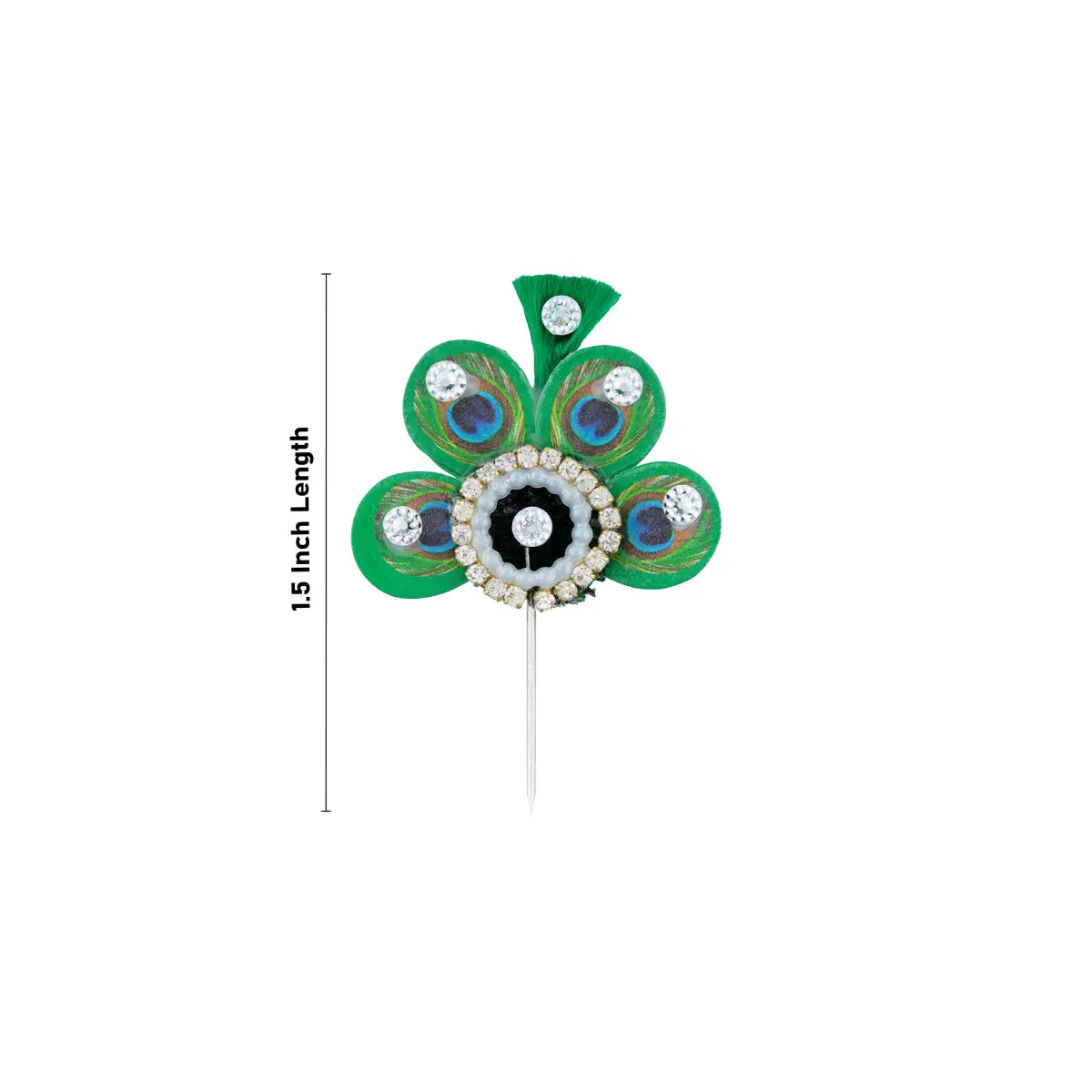 Beautiful Mor Pankh Kalangi - 1.5 Inches | Artificial Peacock Feather/ Decorated Feather for Laddu Gopal