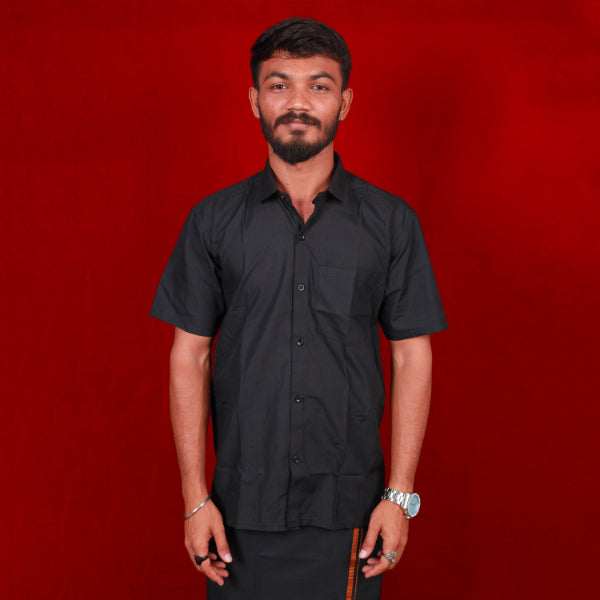 Black Shirt | Size 38/ Half Hand Shirt/ Black Half Hand Shirt/ Black Shirt for Men