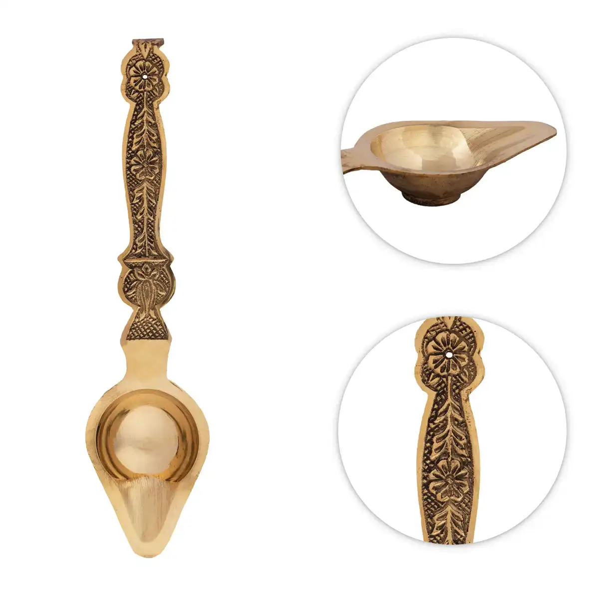 Brass Aarti - 1 x 10 Inches | One Mukh Spoon Karpoora Burner/ Pooja Aarti/ Aarti Diya for Home