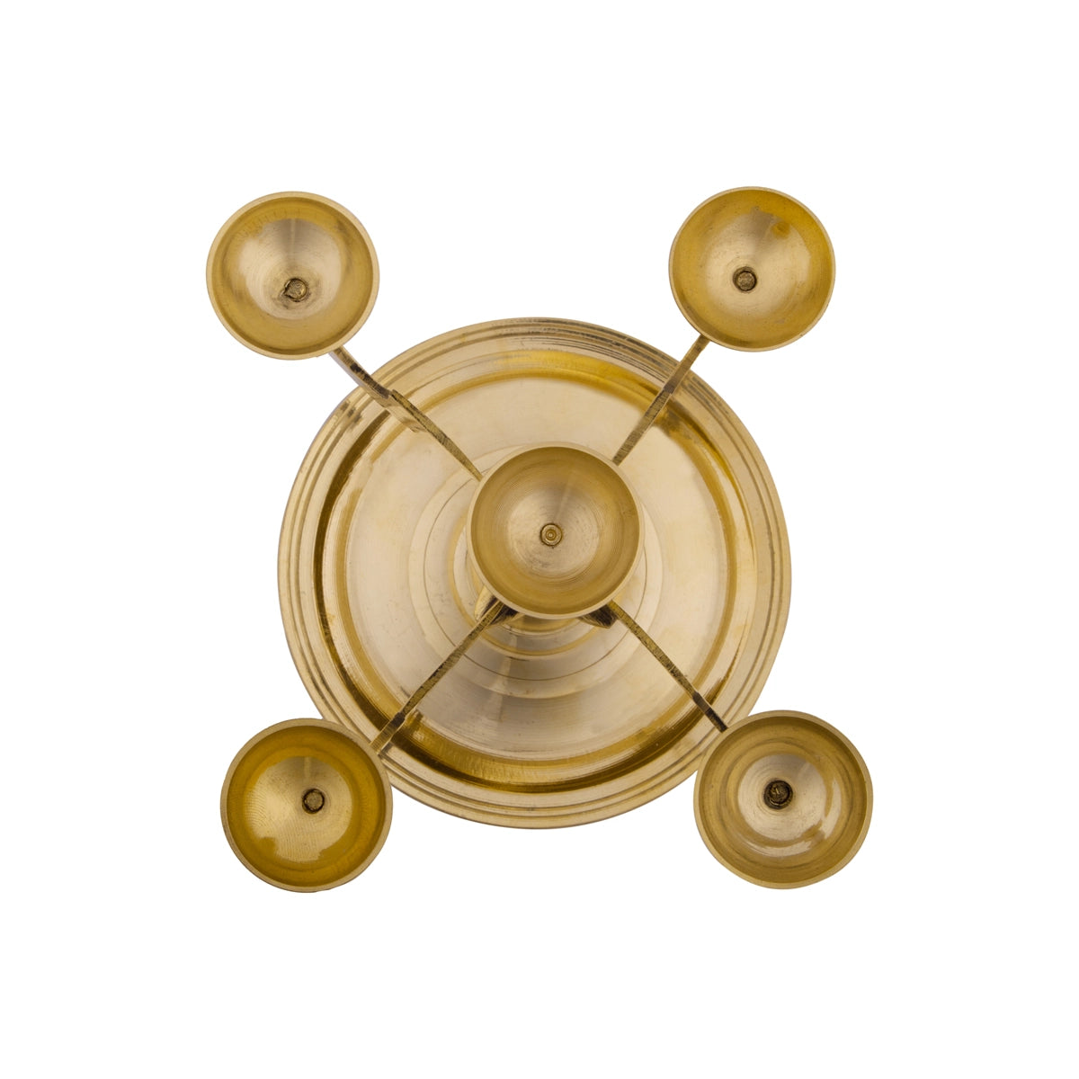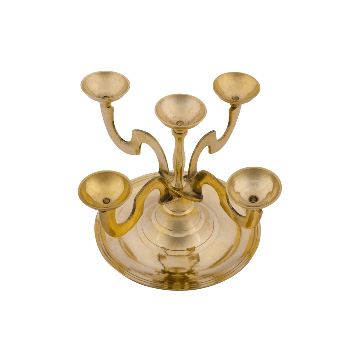Brass Aarti - 5 x 6 Inches | 5 Branch Camphor Aarti with Handle/ Aarti Kapoor for Pooja/ 40 Gms Approx