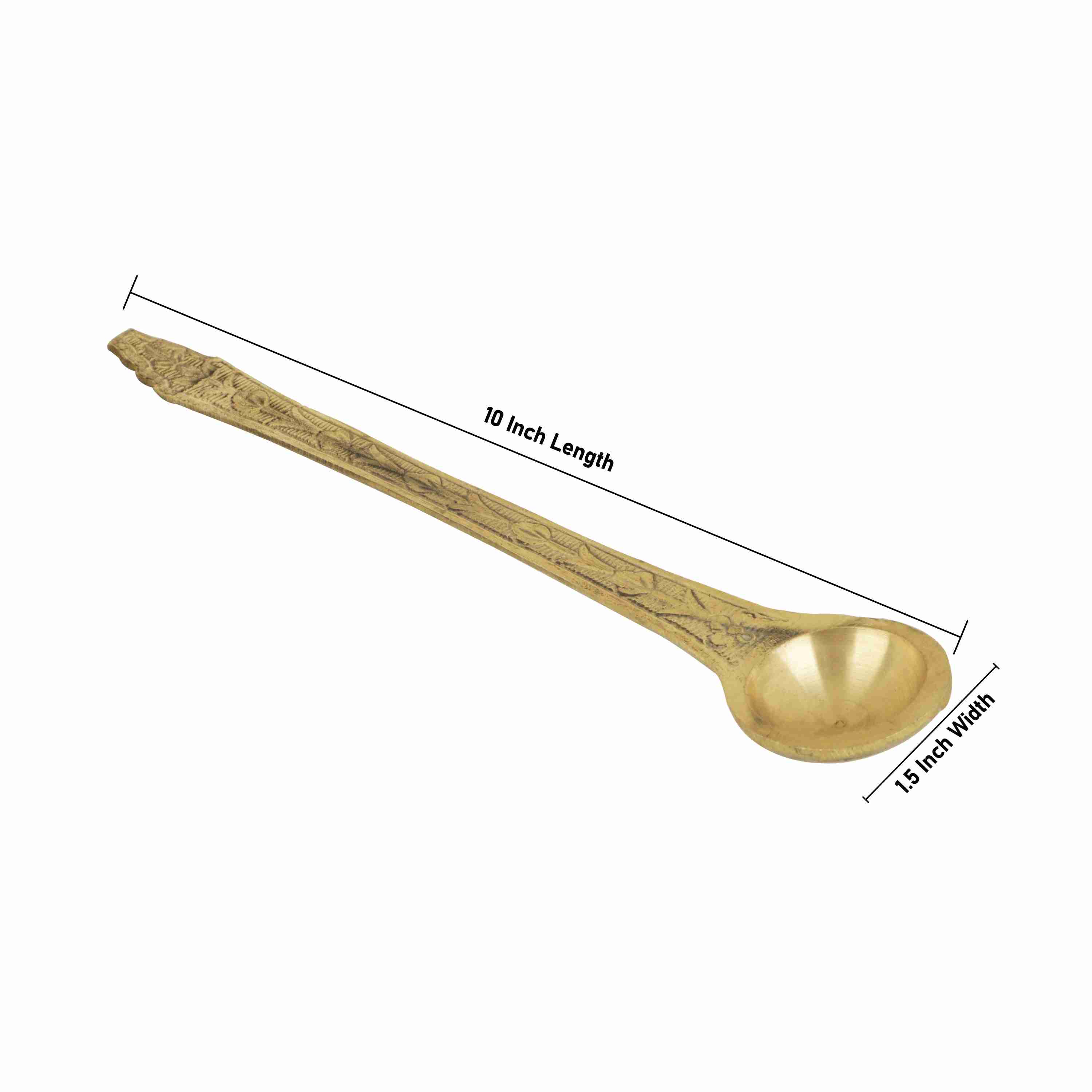 Brass Achmani - 10 x 1.5 Inches | Achmani Spoon/ Pooja Spoon/ Nagam Handle Uddharani for Pooja