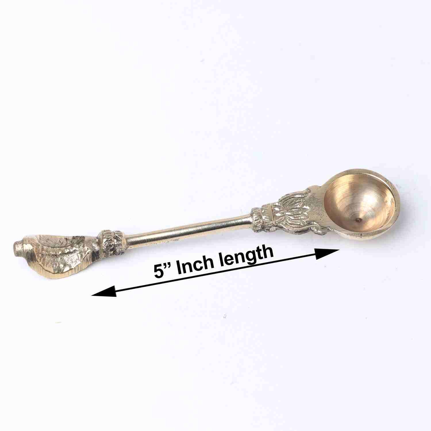 Brass Achmani - Nagam - 5 x 1 Inches | Achmani Spoon/ Pooja Spoon/ Nagam Handle Uddharani for Pooja