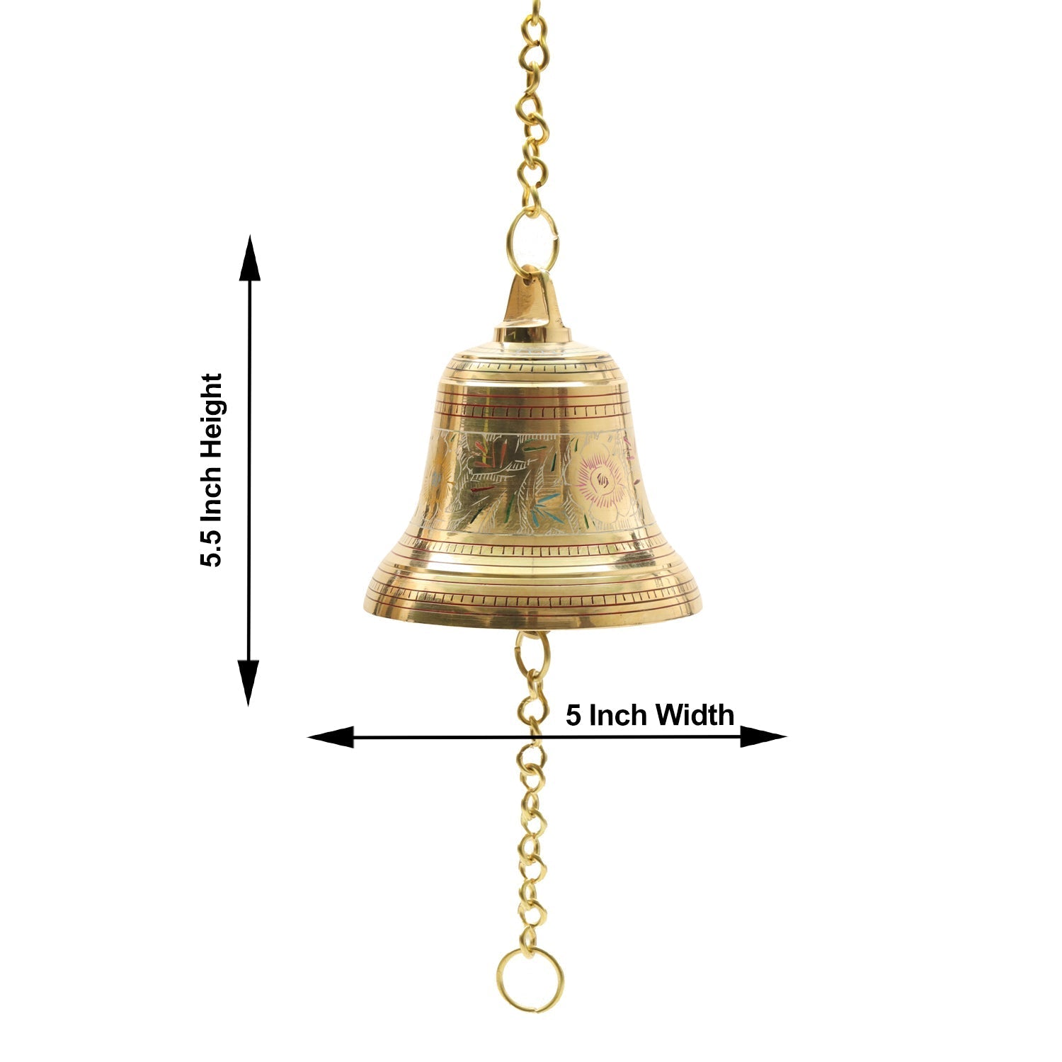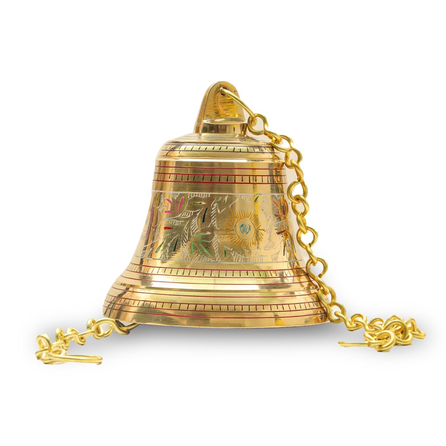 Brass Bell - Enamel - 5.5 Inches | Brass Bell Hanging/ Pooja Hanging Bell with Chain/ Hanging Bells for Mandir