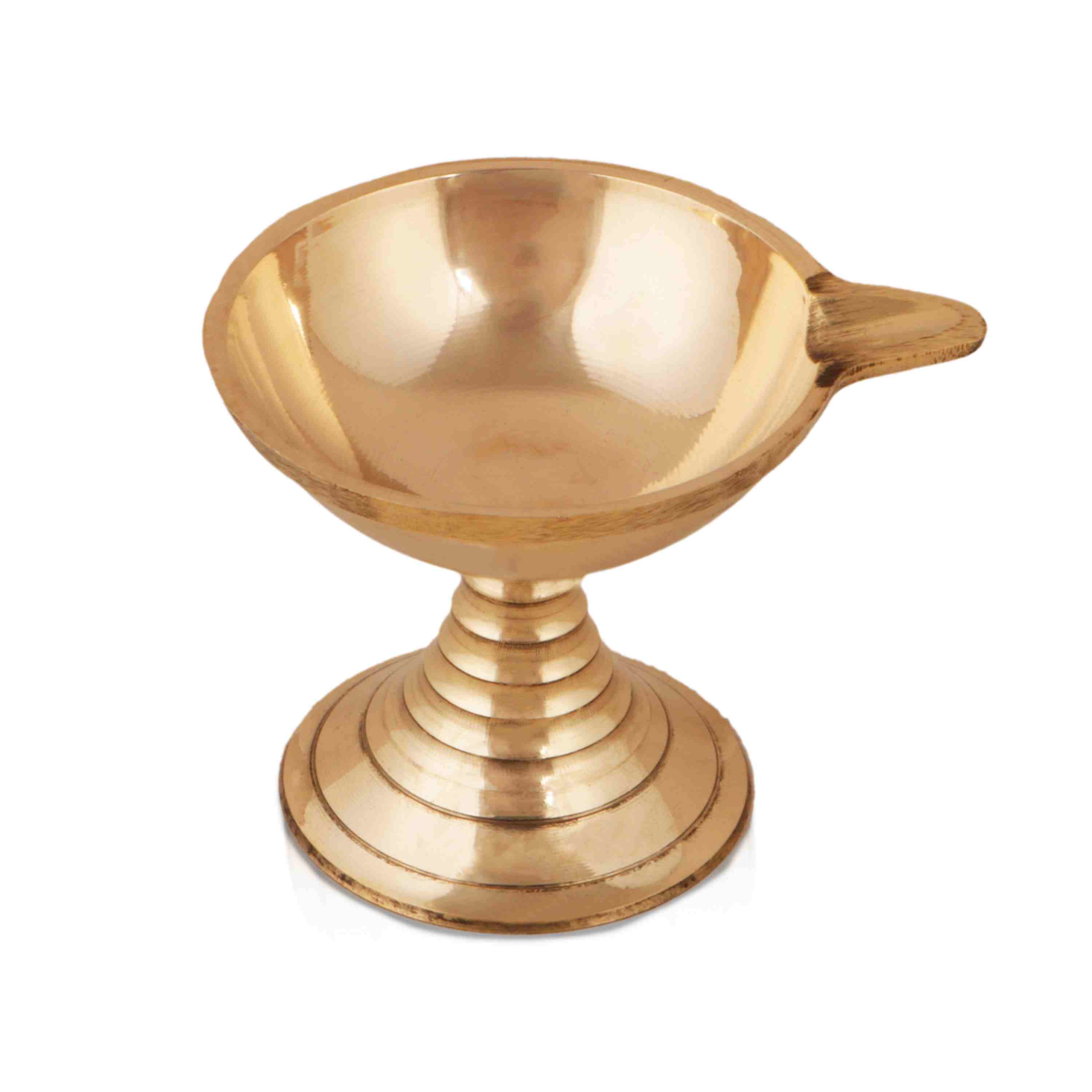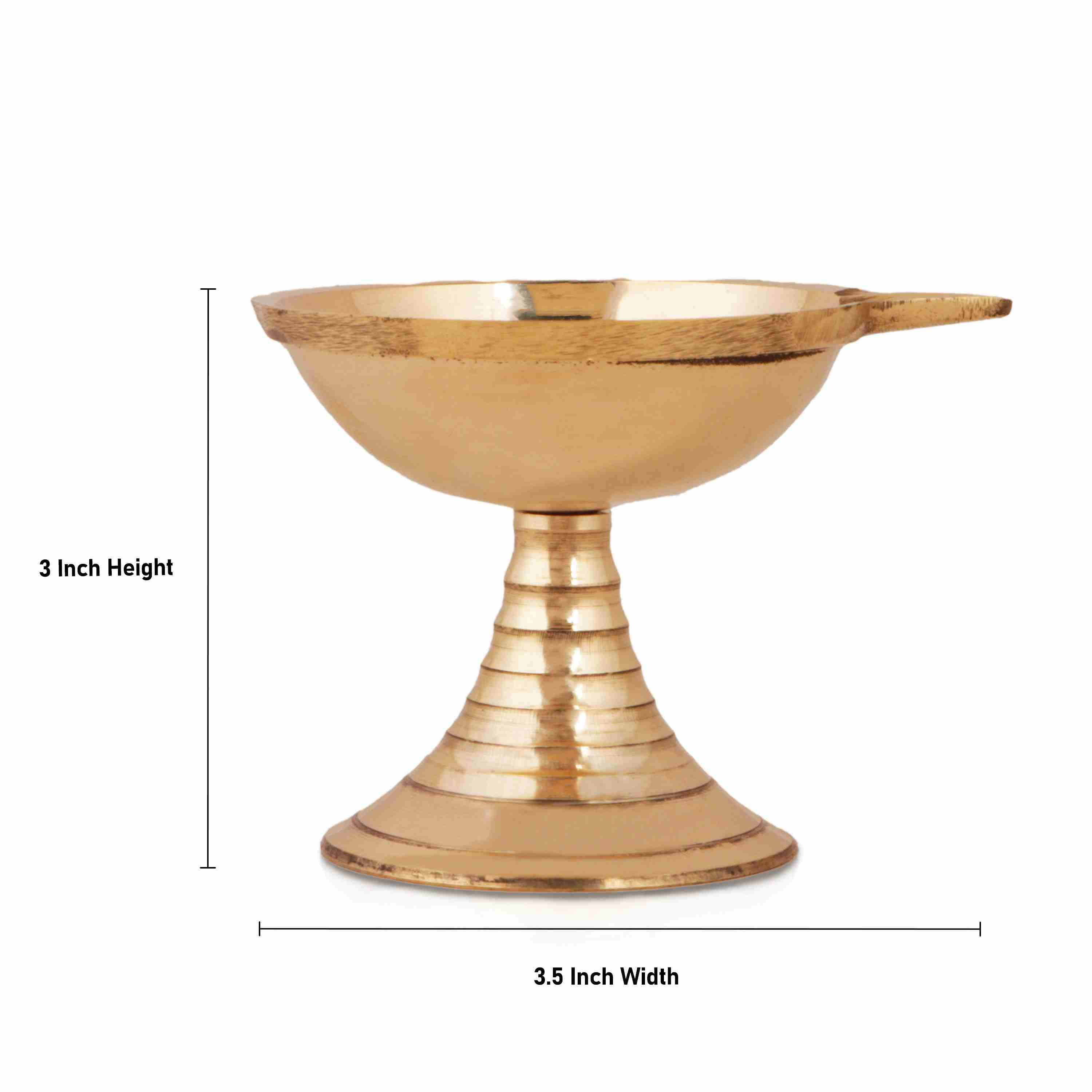Brass Diya - 3 x 3.5 Inches | Agal Vilakku with Base/ Karthik Deep/ Brass Deepam/ Brass Vilakku for Pooja