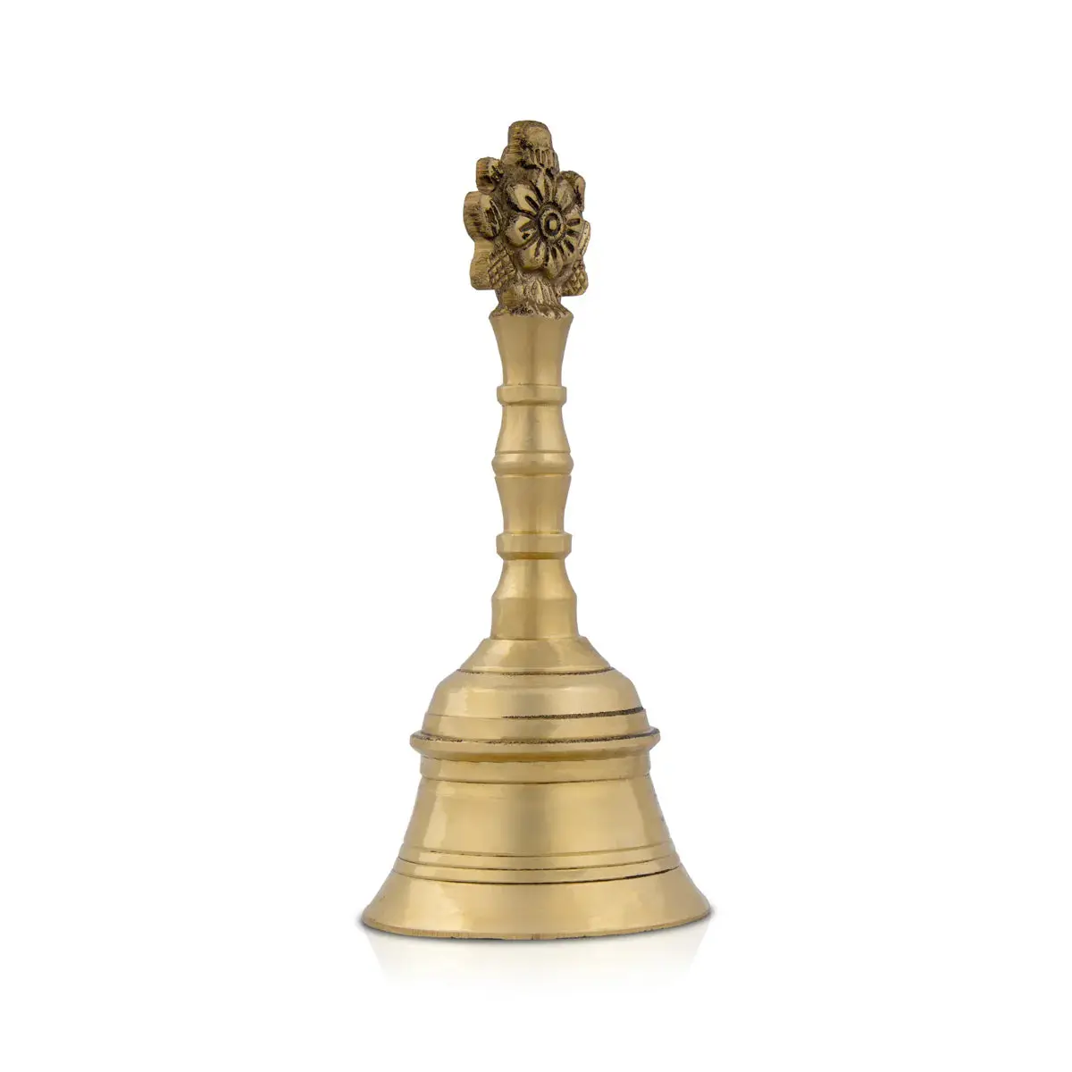 Brass Hand Bell - 6.25 x 1.25 Inches | Pooja Bell/ Shankh Chakra Handle Ghanti Bell for Home/ 405 Gms Approx