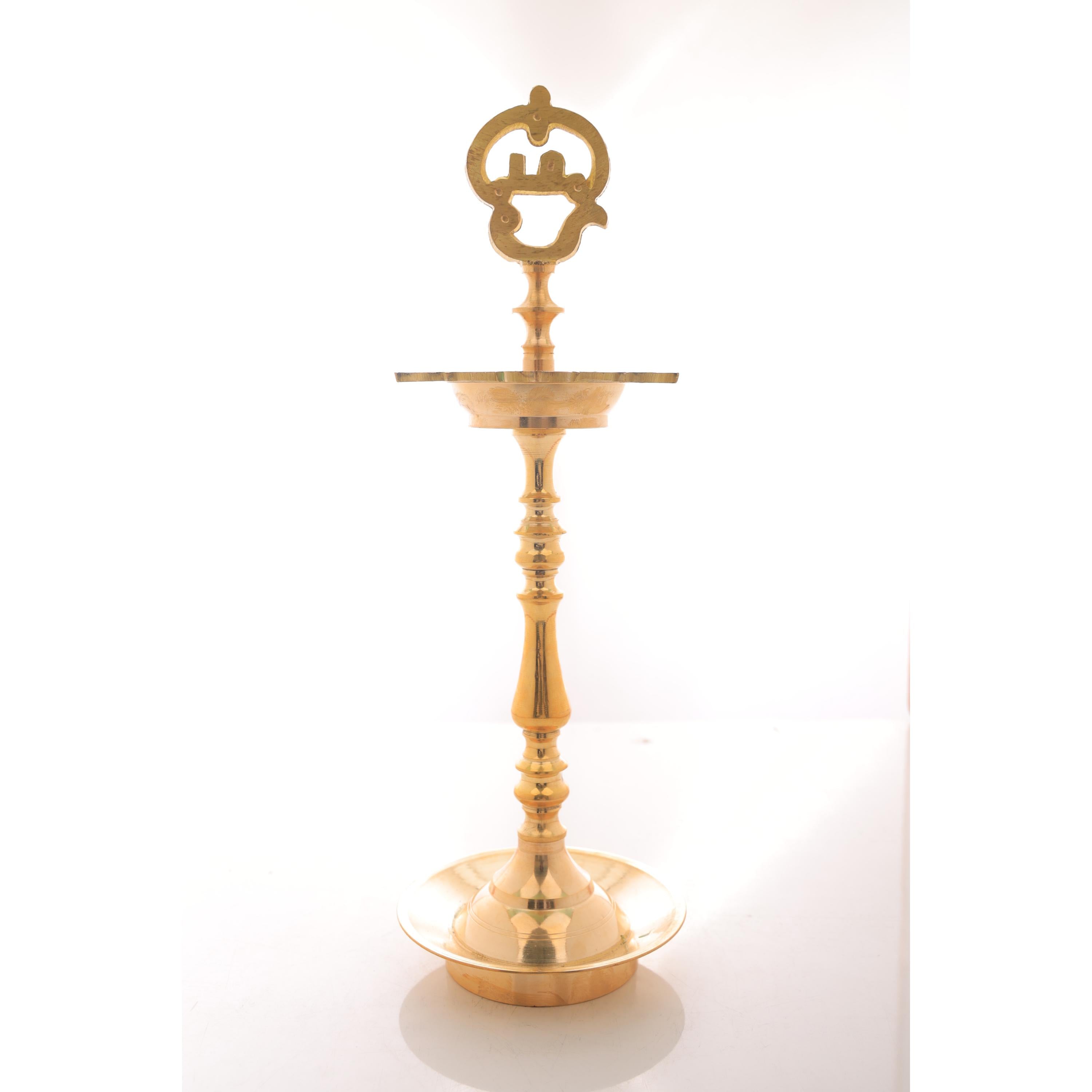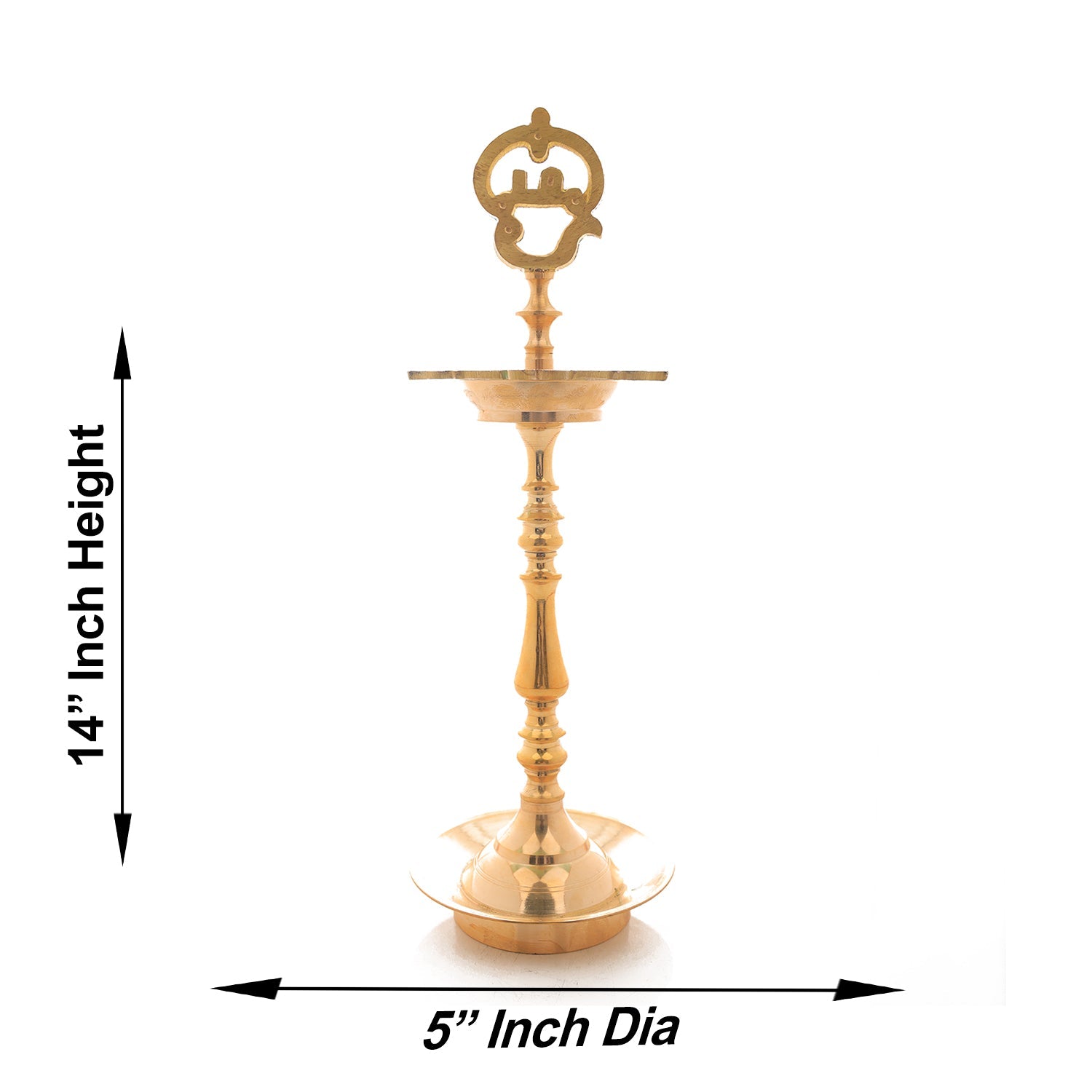 Brass Kuthu Villaku - 14 Inches | Om Design Lamp/ Diya/ Deepam for Pooja/ 960 Gms Approx