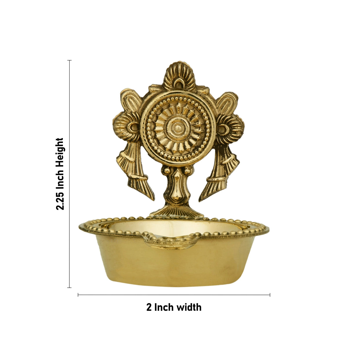 Brass Lamp - 2.25 x 2 Inches | Chakra Design Brass Vilakku/ Brass Deepam for Pooja