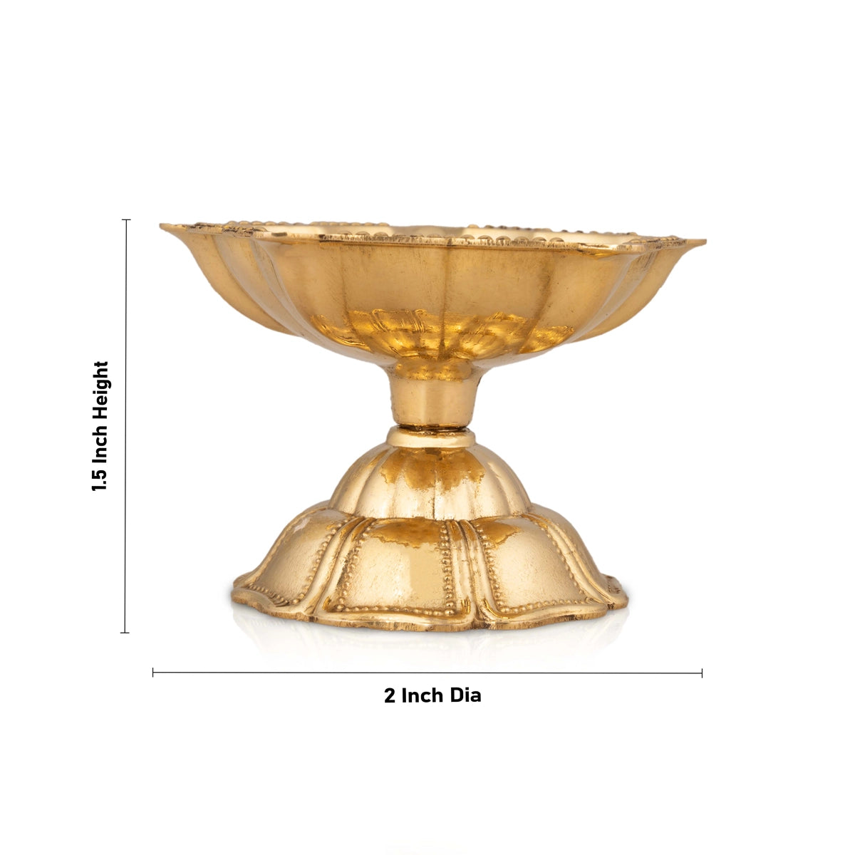Brass Lamp With Base - 1.5 x 2 Inches | Star Design Deep/ 5 Face Brass Vilakku for Pooja/ 35 Gms Approx