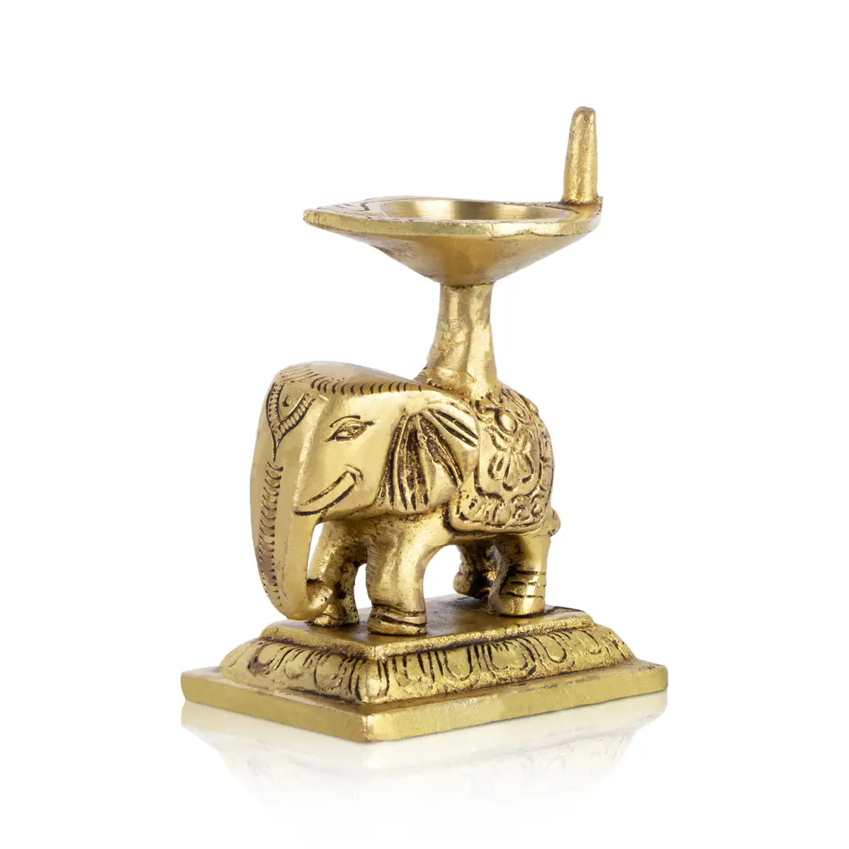 Brass Lamp With Elephant - 3.5 x 3 Inches | Antique Polish Vilakku/ Deepam for Pooja/ 320 Gms Approx
