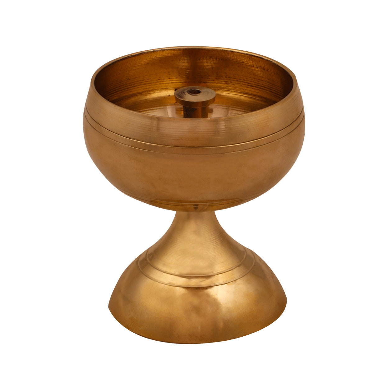 Brass Nanda Deep with Base - 4 x 2.5 Inches | Brass Lamp/ Vilakku/ Apple Nanda Diya for Pooja