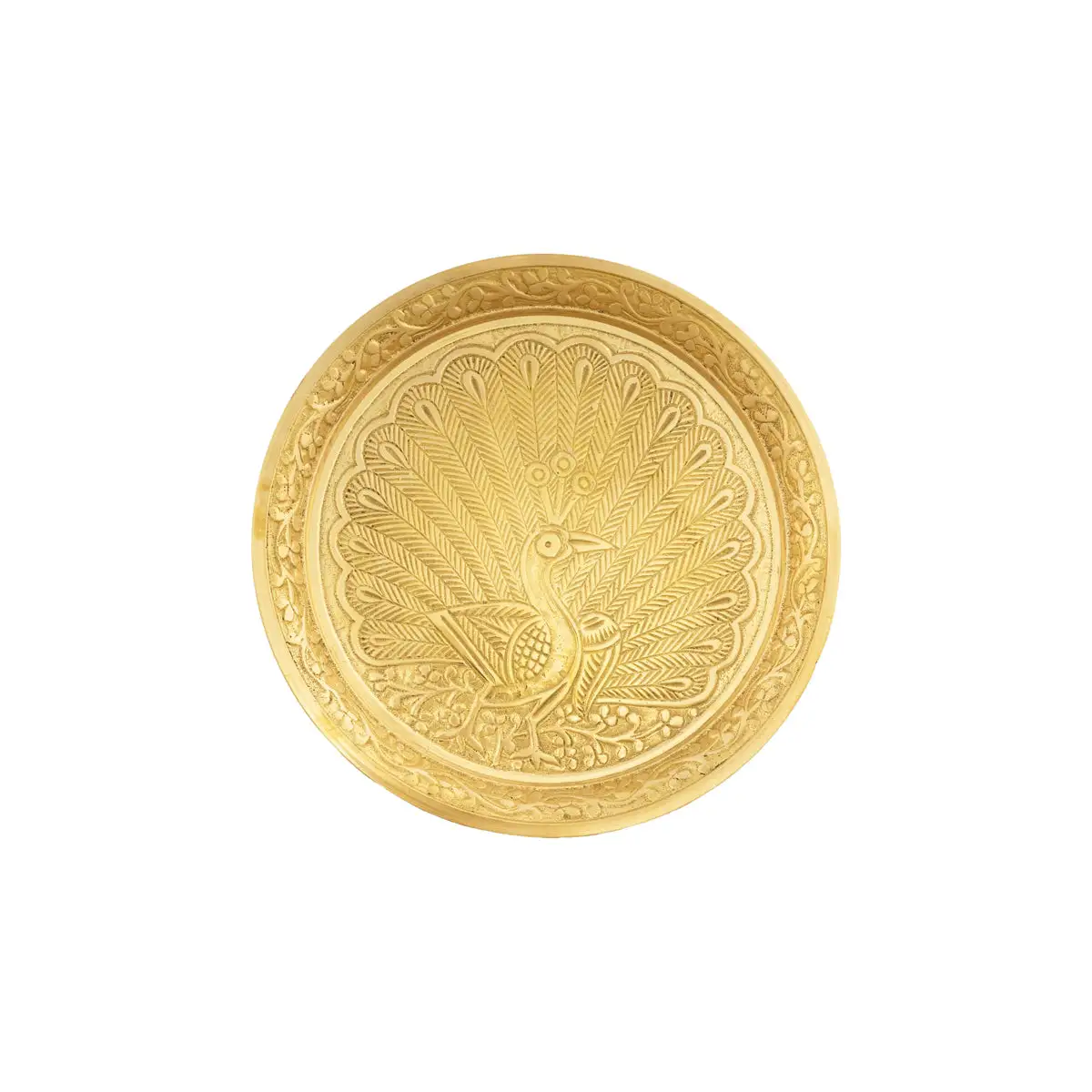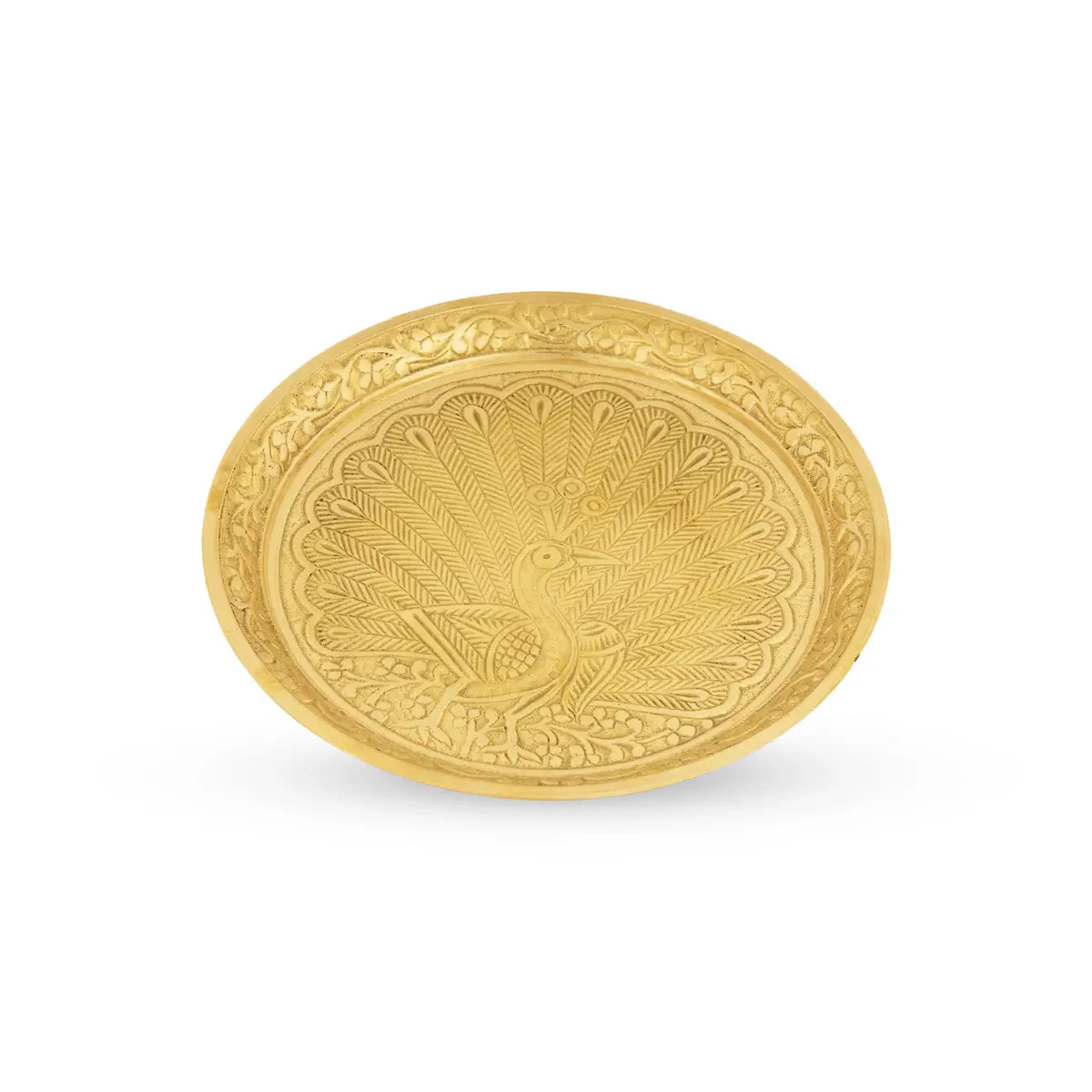 Brass Plate - 0.5 x 6.25 Inches | Peacock Design Pin Tray/ Pooja Stand/ Pooja Asan for Deity/ 280 Gms Approx