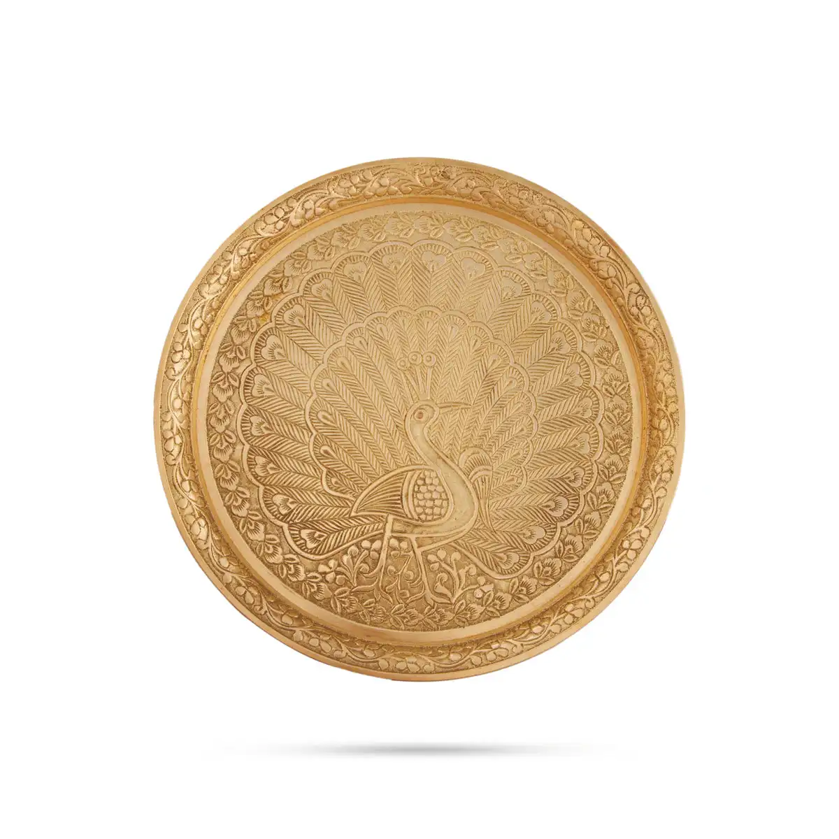 Brass Plate - 1 x 8 Inches | Pin Tray/ Peacock Design Pooja Asan for Deity/ 445 Gms Approx