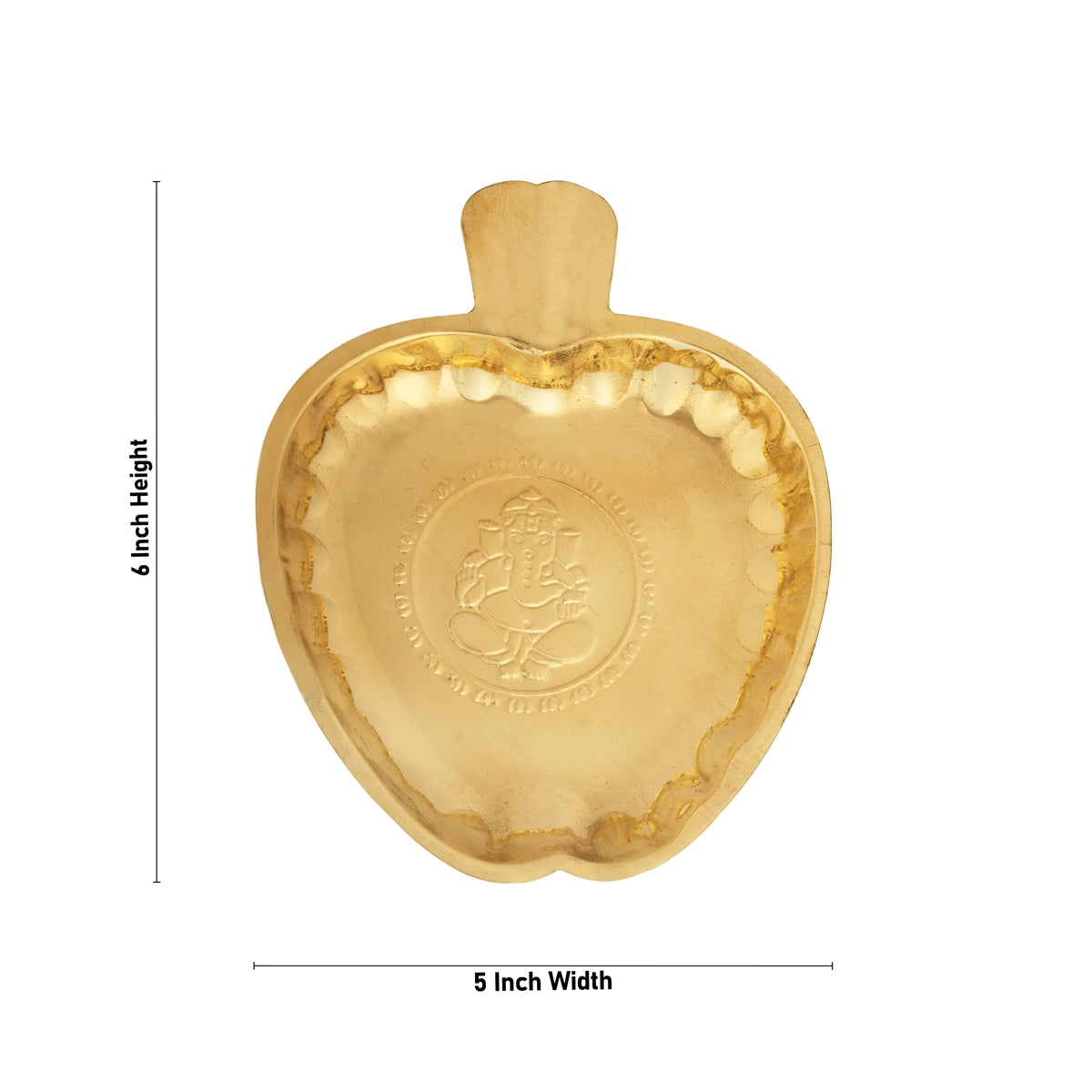 Brass Plate - 6 x 5 Inches | Apple Design Pooja Plate/ Pooja Thali Plate for Home/ 50 Gms Approx