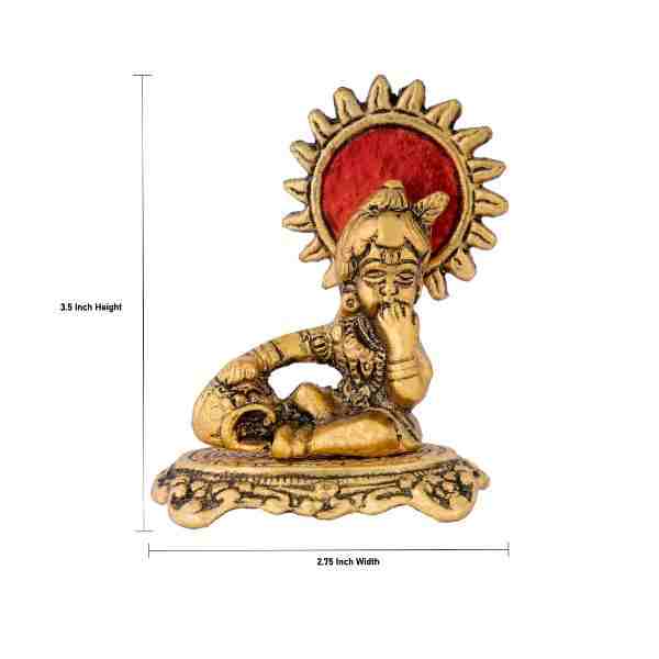 Butter Krishna - 3.5 x 2.75 Inches | Krishna Statue/ Aluminium Krishna Idol for Pooja/ 75 Gms Approx