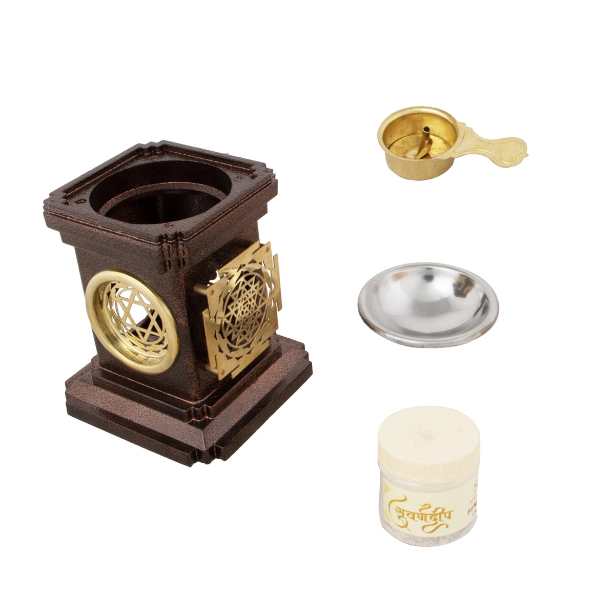 Camphor Suvarnadeep - 5 x 5 Inches | Kapoor Dani Suvarnadeep Diya/ Copper Oxidised Kapur Dani/ 725 Gms Approx
