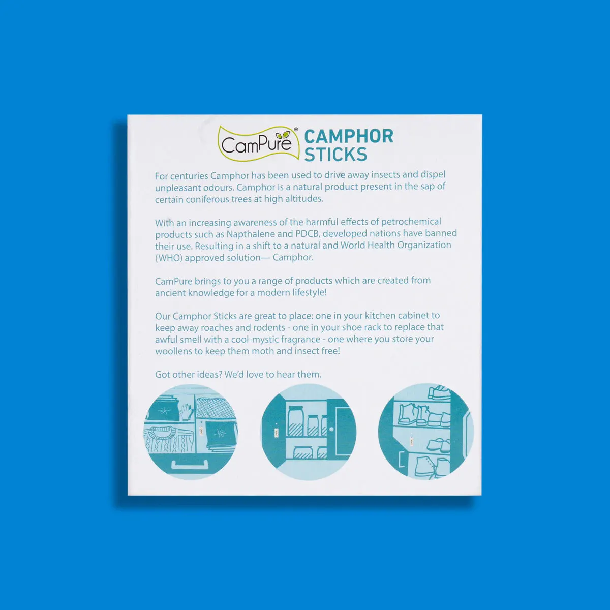 Campure Camphor Sticks - 18 Gms | Pack Of 2/ Kitchen Cabinet/ Regular Sticks for Repels Insects & Rodents