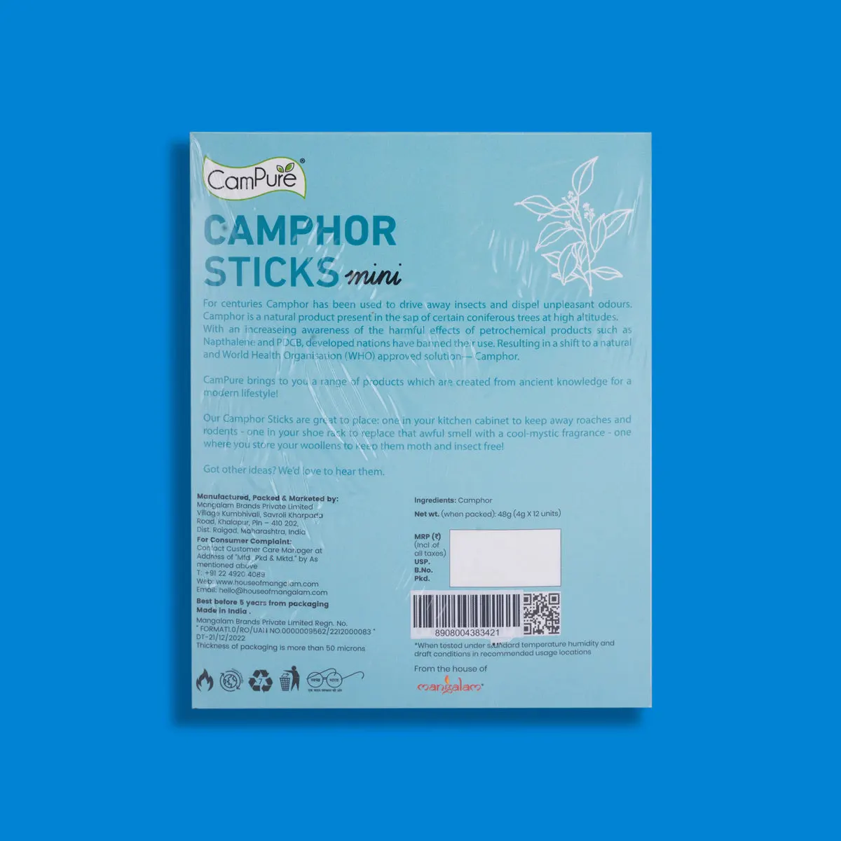 Campure Camphor Sticks - 48 Gms | Pack Of 12/ Kitchen Cabinet/ Regular Sticks for Repels Insects & Rodents