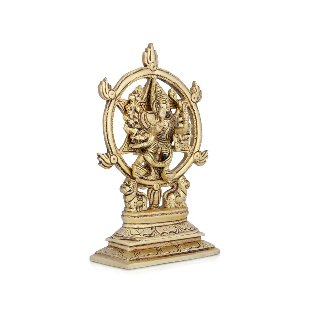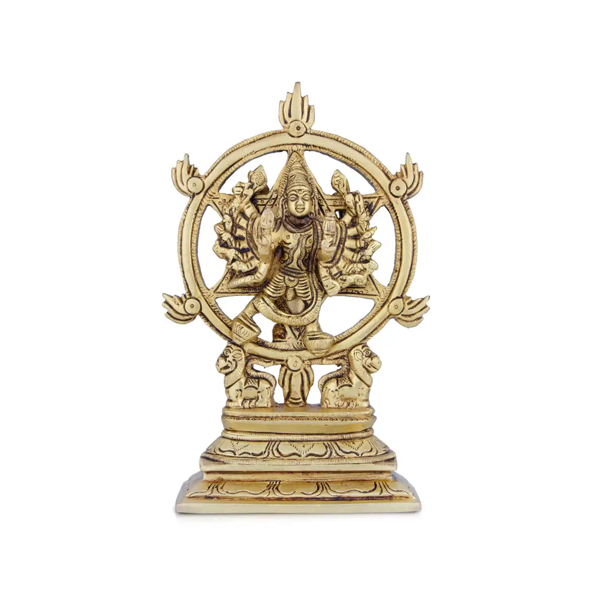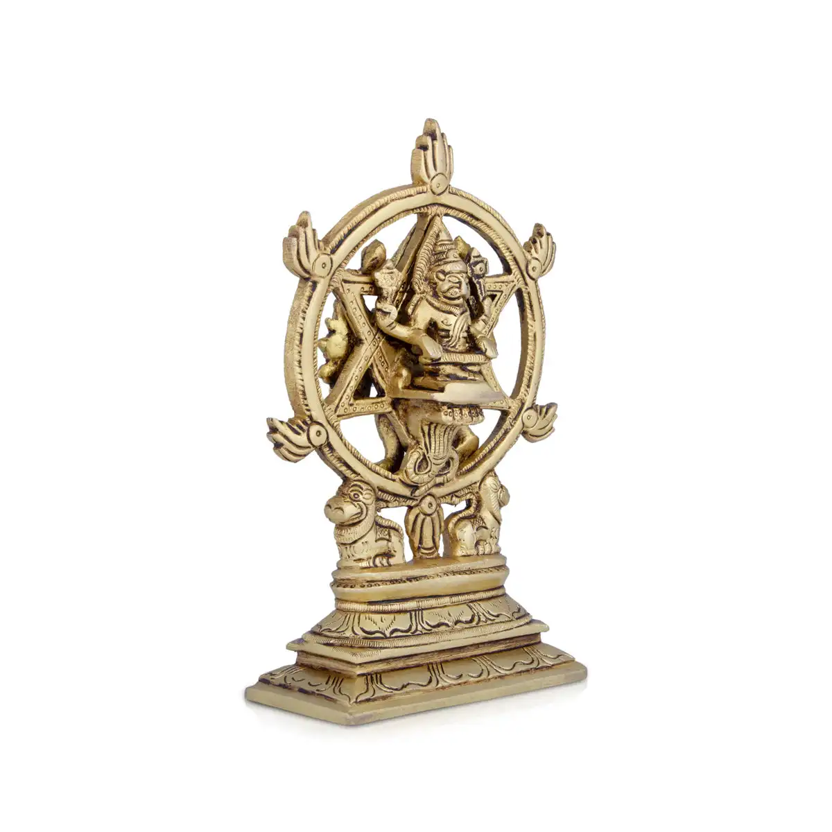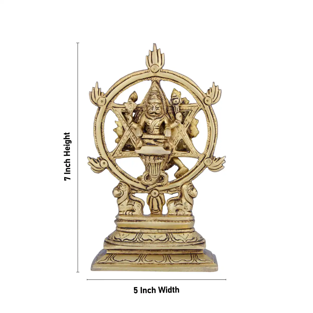 Chakrathazhwar Idol - 7 x 5 Inches | Antique Brass Idol/ Chakrathalwar Statue for Pooja/ 1.040 Kgs Approx