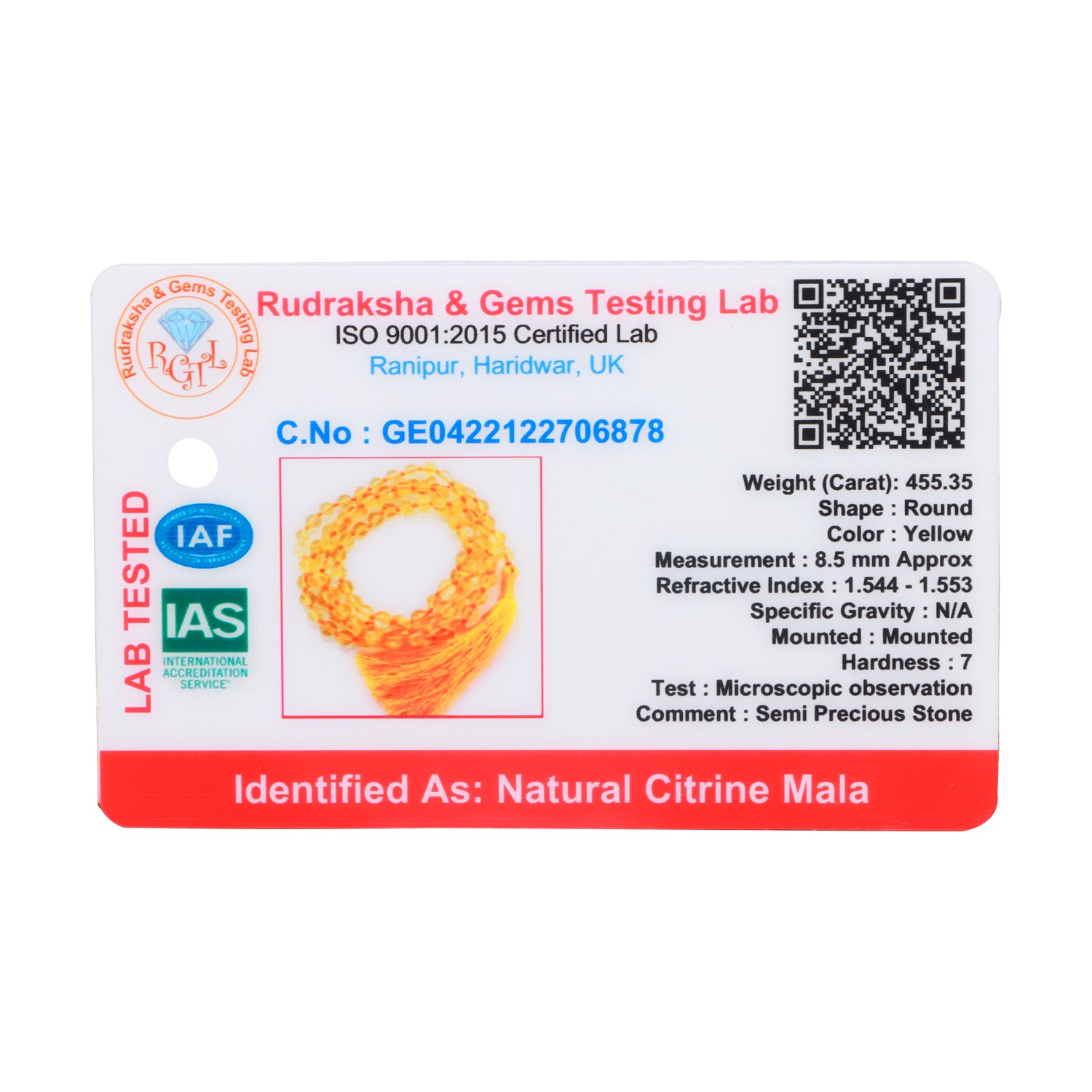 Citrine Mala - 20 Inches | Citrine Mala Beads/ Semi Precious Stone Mala/ Crystal Mala for Men & Women