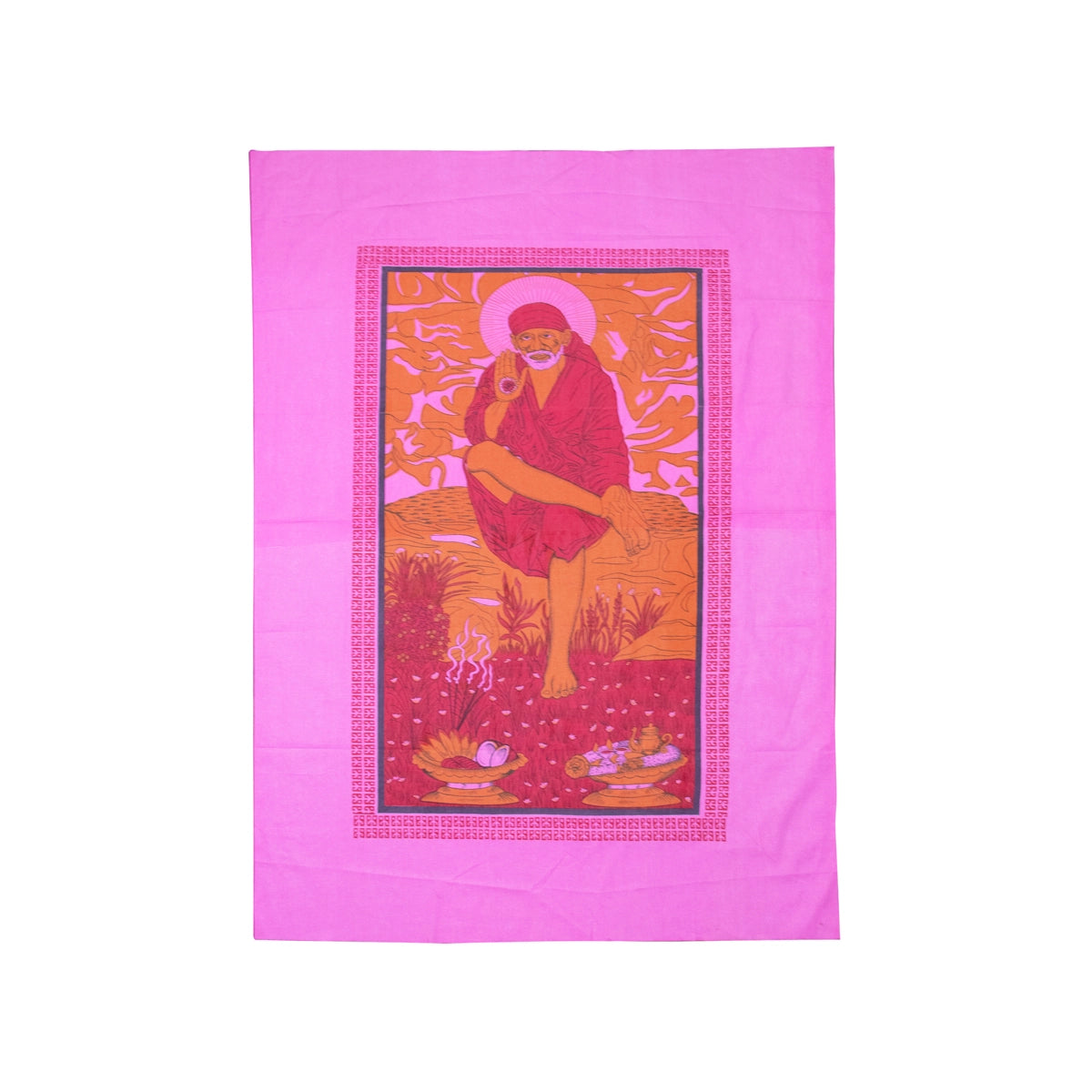 Cotton Screen - 66 x 48 Inches | Sai Baba Printed Curtain for Pooja Room/ Assorted Colour