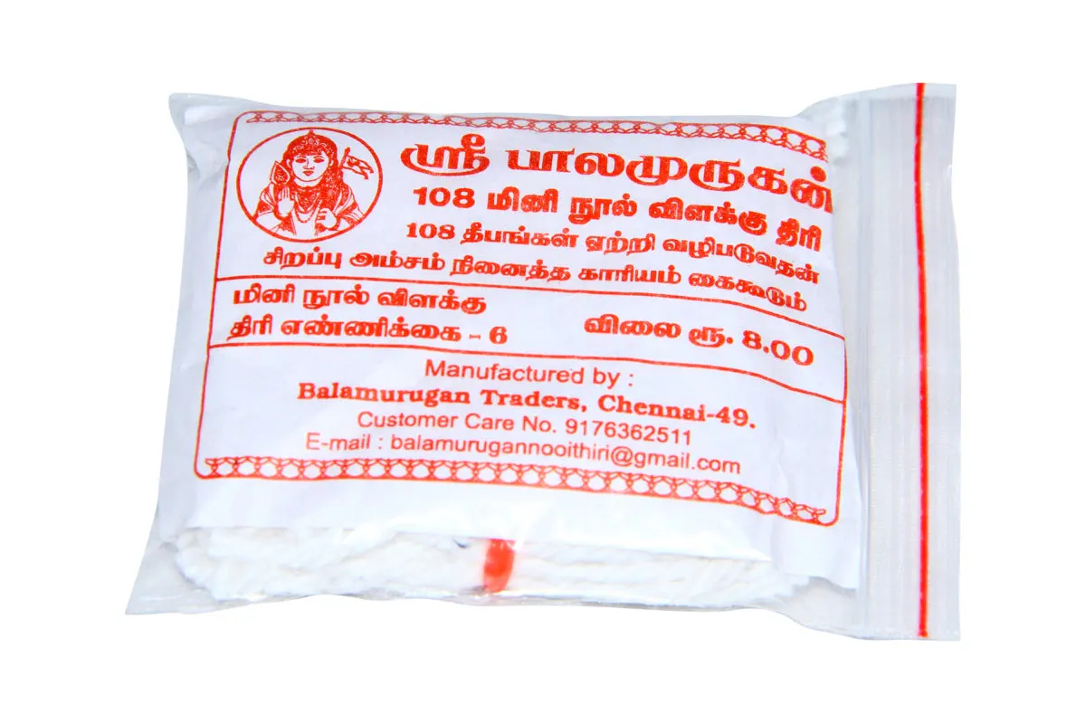 Cotton Wicks - 108 Pcs | Vilakku Thiri/ Lamp Wicks/ Panchu Thiri for Lamp