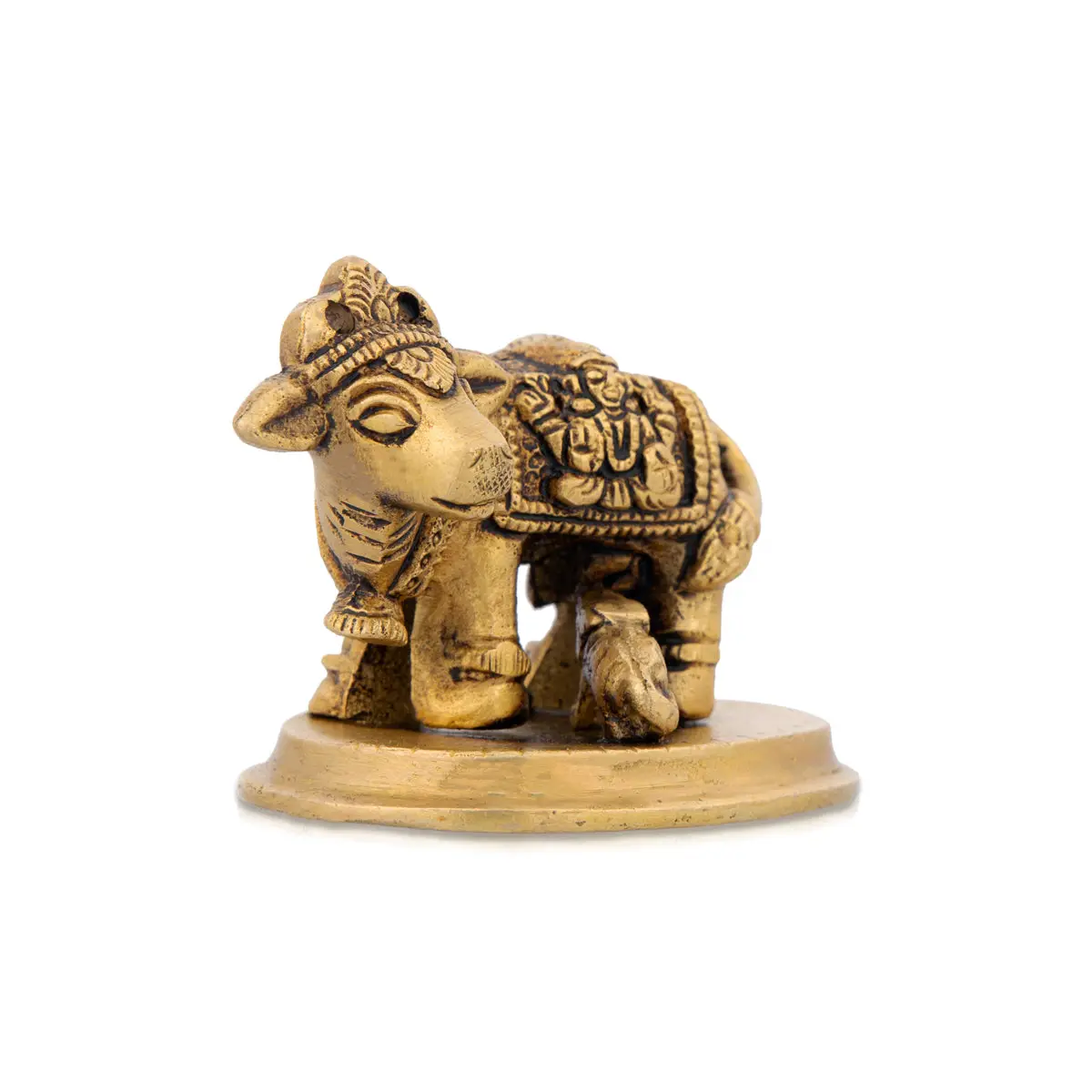 Cow and Calf Idol - 2 x 2.75 Inches | Antique Brass Statue/ Kamadhenu Statue for Pooja/ 240 Gms Approx