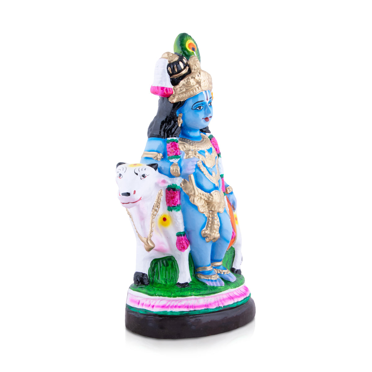 Cow Krishna Clay Golu Bommai - 13.5 x 7 Inches | Giri Golu Doll/ Navaratri Golu Bomma/Gombe/Bommai