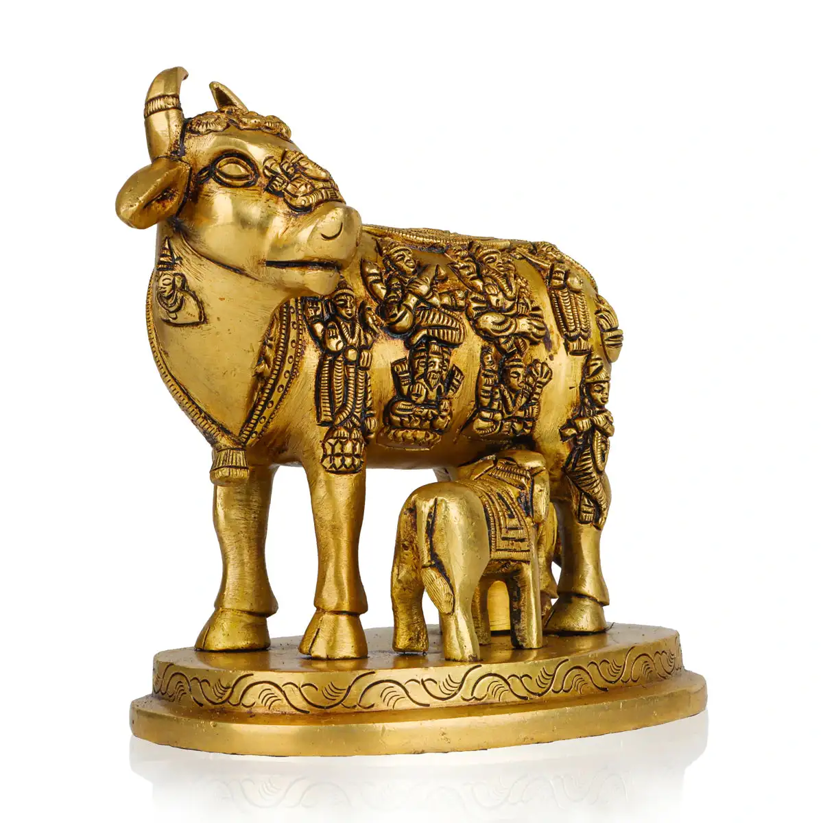 Home / Products / Table Stand Accessories / Cow With Calf Idol - 6.5 x 6 Inches | Antique Brass Idol/ Kamdhenu Cow With Calf Statue for Home/ 2.180 Kgs