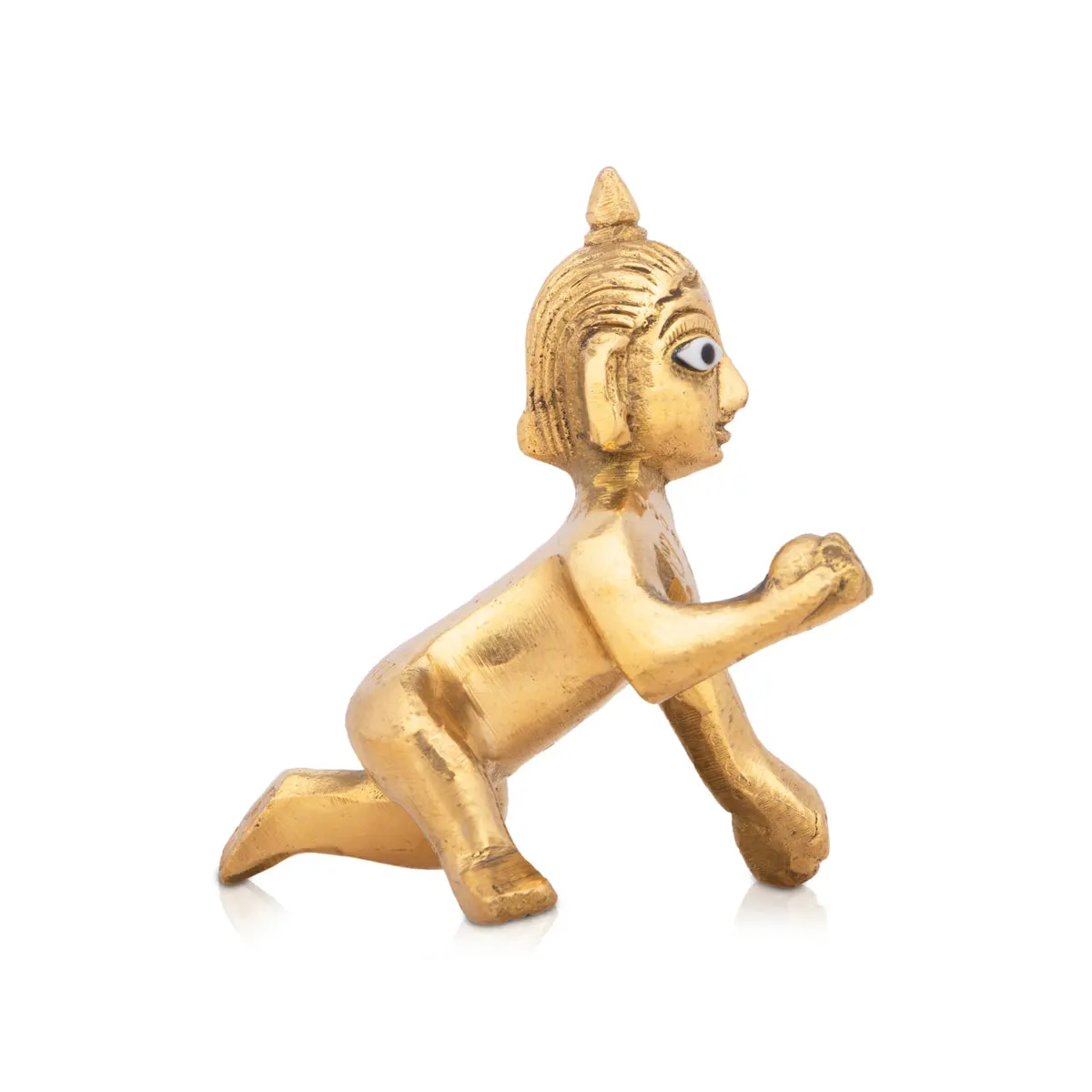 Crawling Krishna Idol - 3 x 2.25 Inches | Brass Idol/ Laddu Gopal Murti for Janmashtami/ 155 Gms Approx