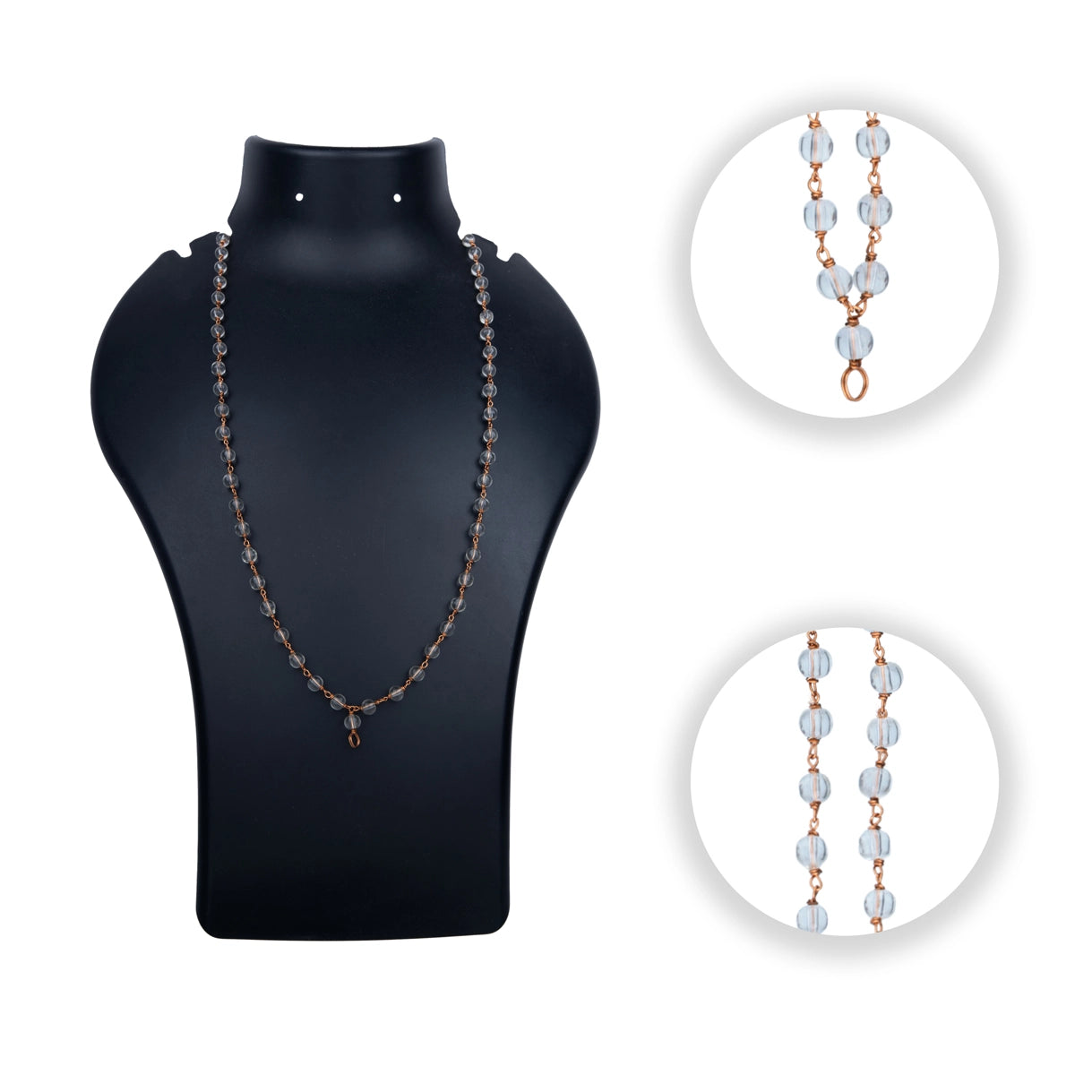 Crystal Mala - 21 Inches | 7mm/ 108 Beads Clear Quartz Mala/ Copper Knot Glass Beads Mala for Meditation