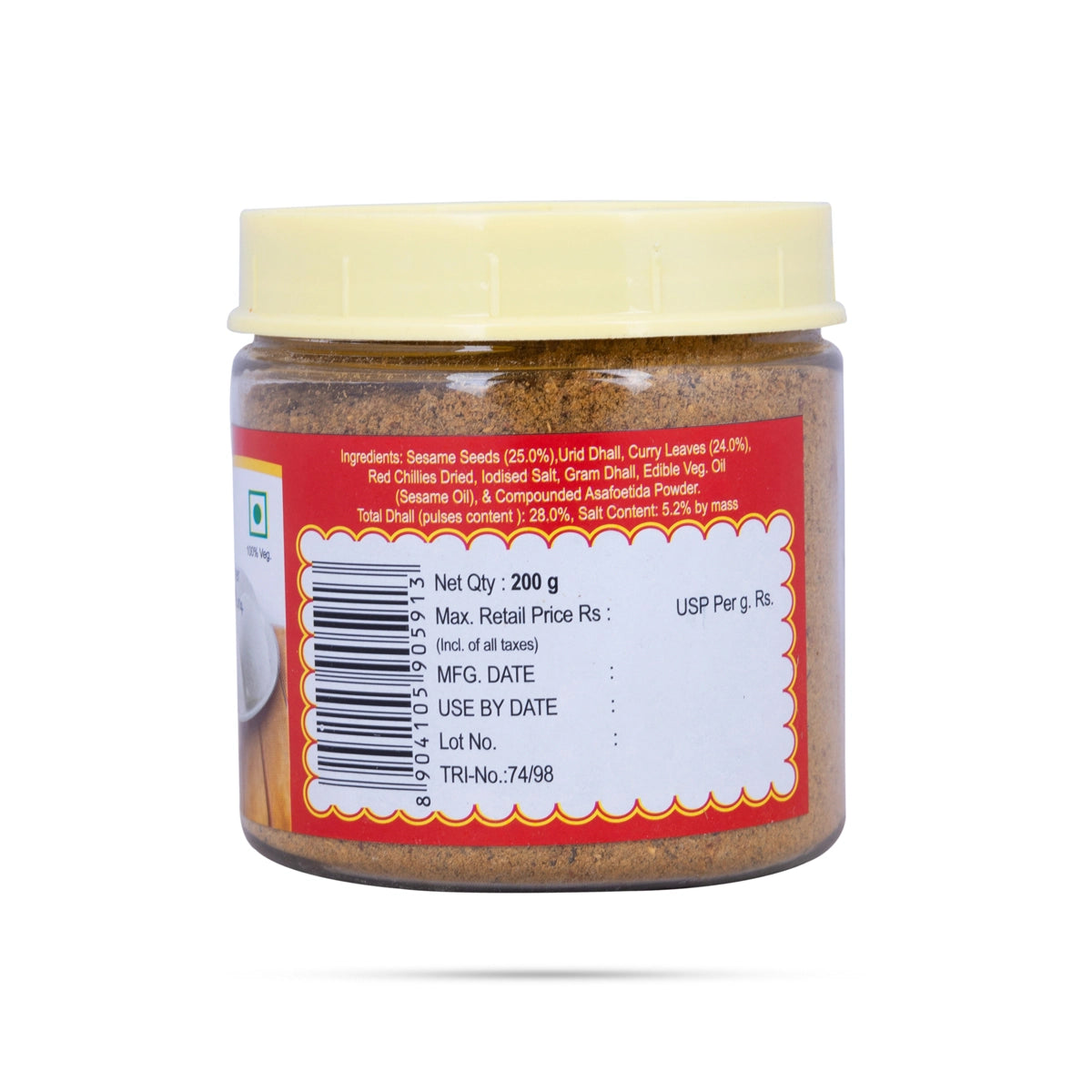 Home / Products / Instant Mixes / Curry Leaf Idly Chilly Powder Jar - 200 Gms | Curry Leaf Idli Chilli Powder/ Curry Leaf Powder Price inclusive of all tax
