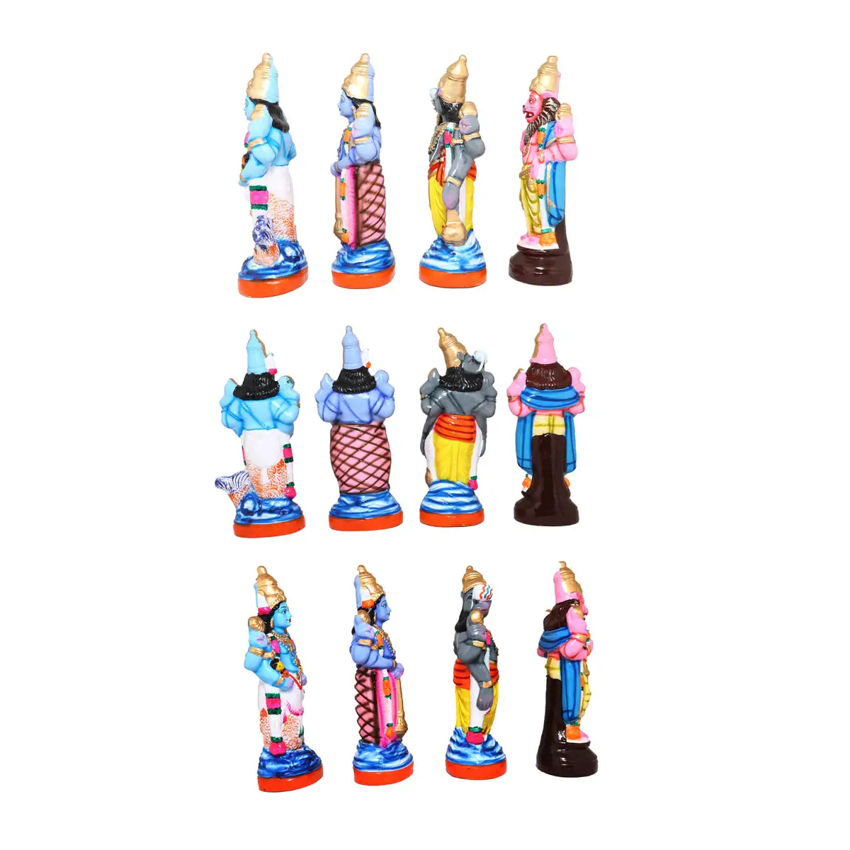 Dasavatharam Clay Golu Bommai Set - 12 x 5 Inches | Giri Golu Doll/ Navaratri Golu Bomma/Gombe/Bommai