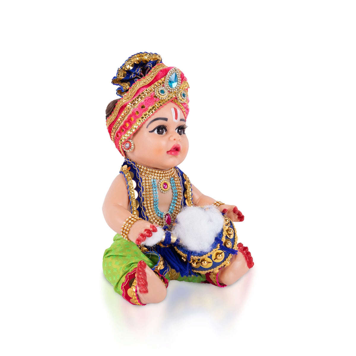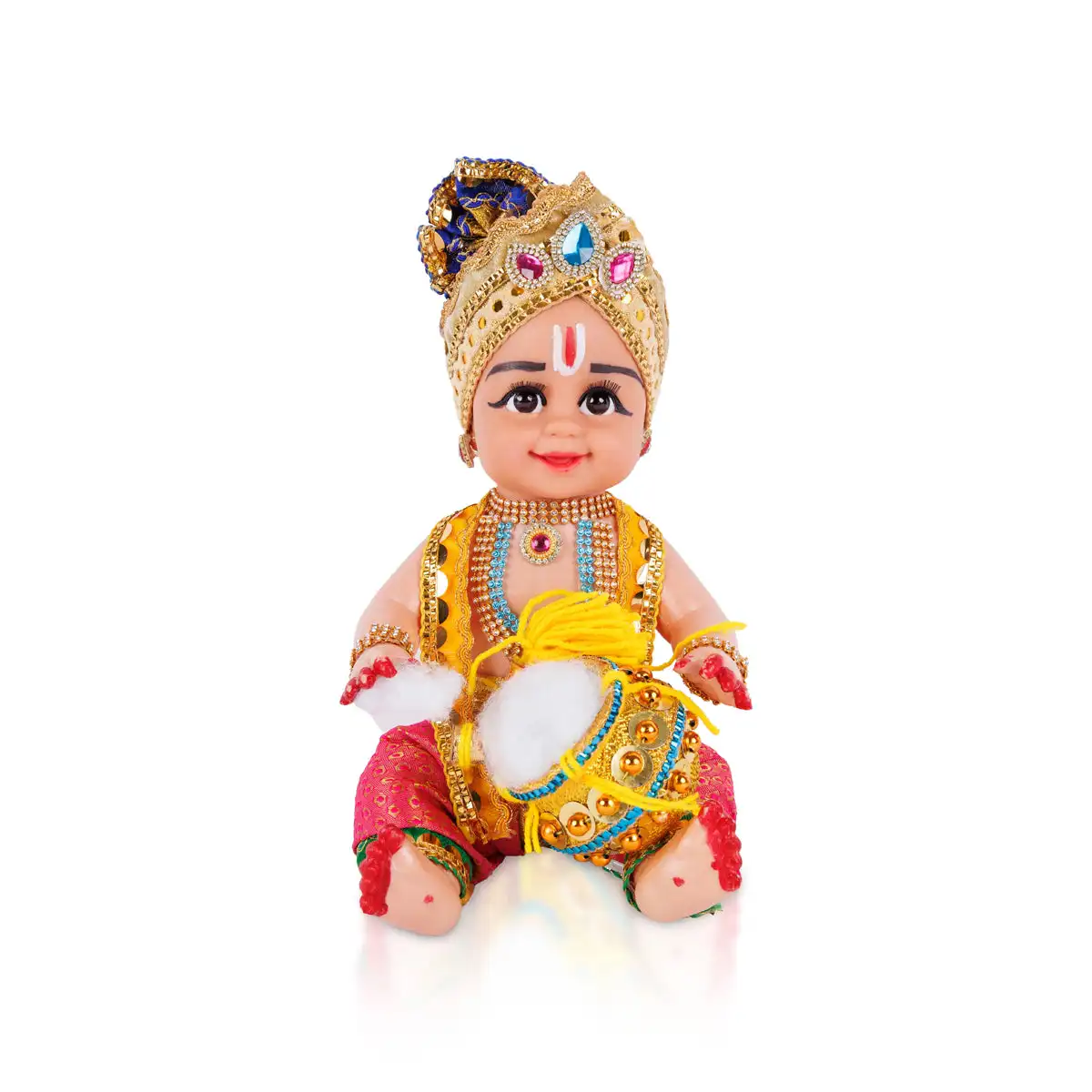 Decorated Krishna Murti With Pot - 12 X 6 Inches | Plastic Krishna Idol/ Gopal Murti For Janmashtami & Pooja