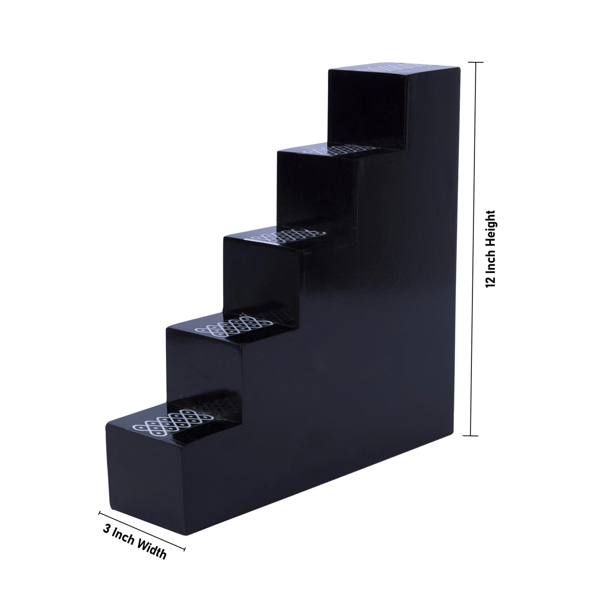 Deepam Stand - 12 x 3 Inches | Wooden Deep Stand/ 5 Step with Kolam Design Diya Stand for Pooja