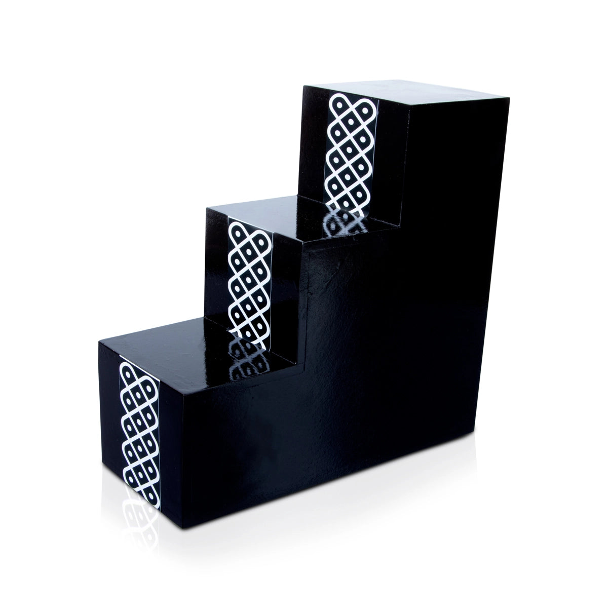 Deepam Stand - 7.5 x 3.5 Inches | Wooden Deep Stand/ 3 Step with Kolam Design Diya Stand for Pooja