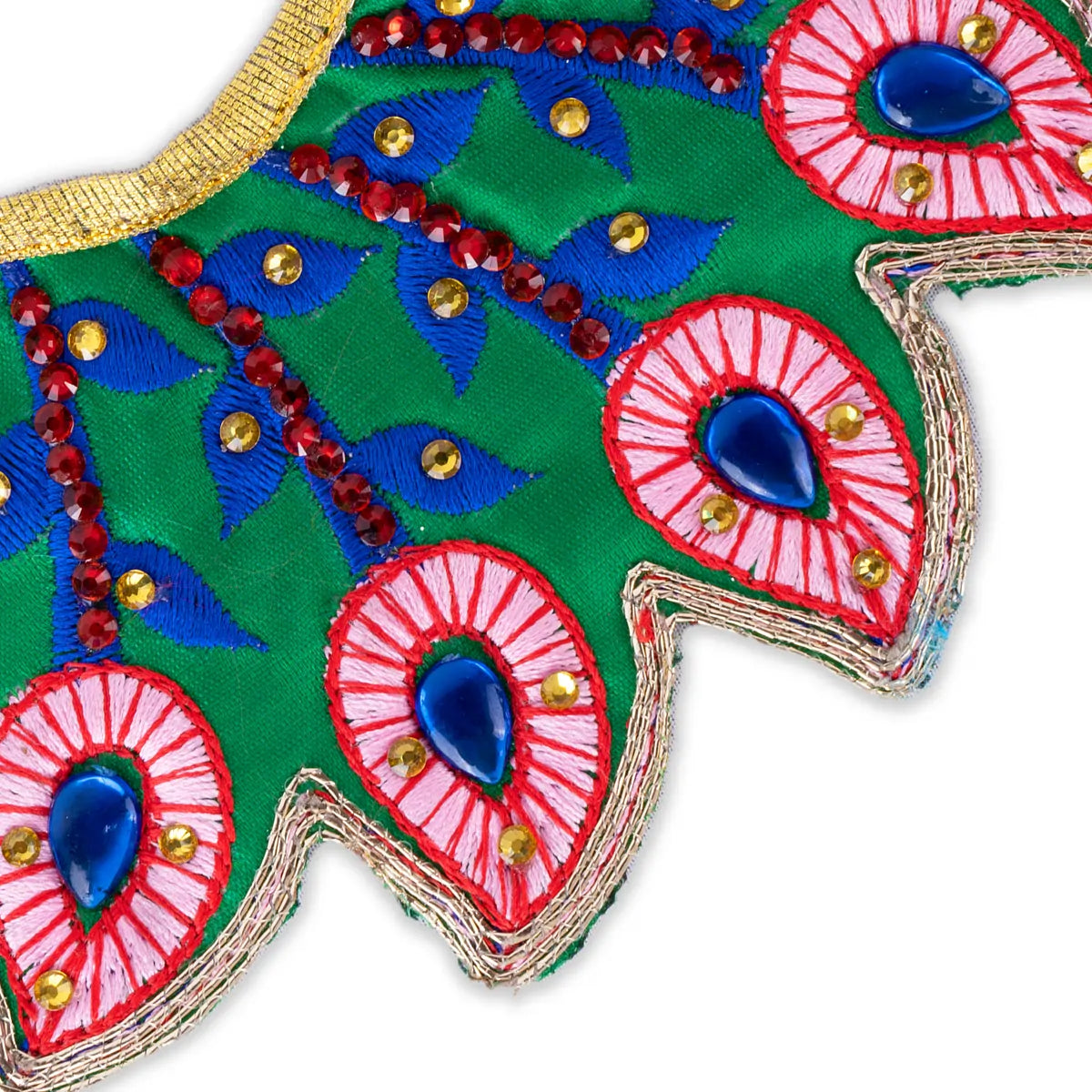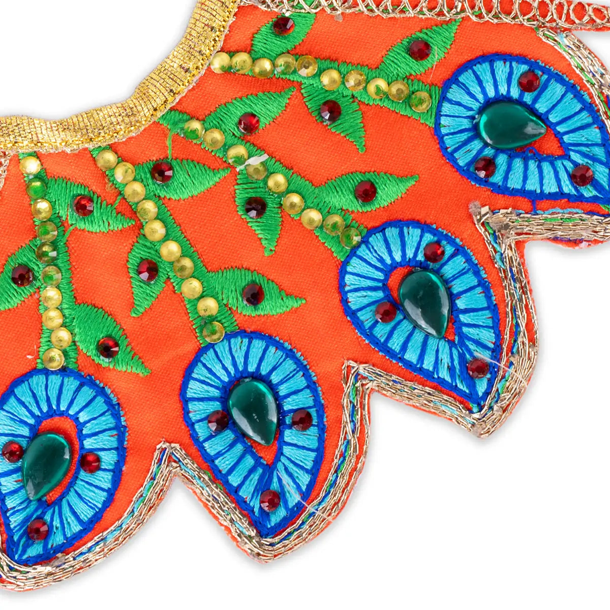 Devi Dress - 3 x 7 Inches | Peacock Feather & Stone Design Mata Dress/ Amman Pavadai for Deity