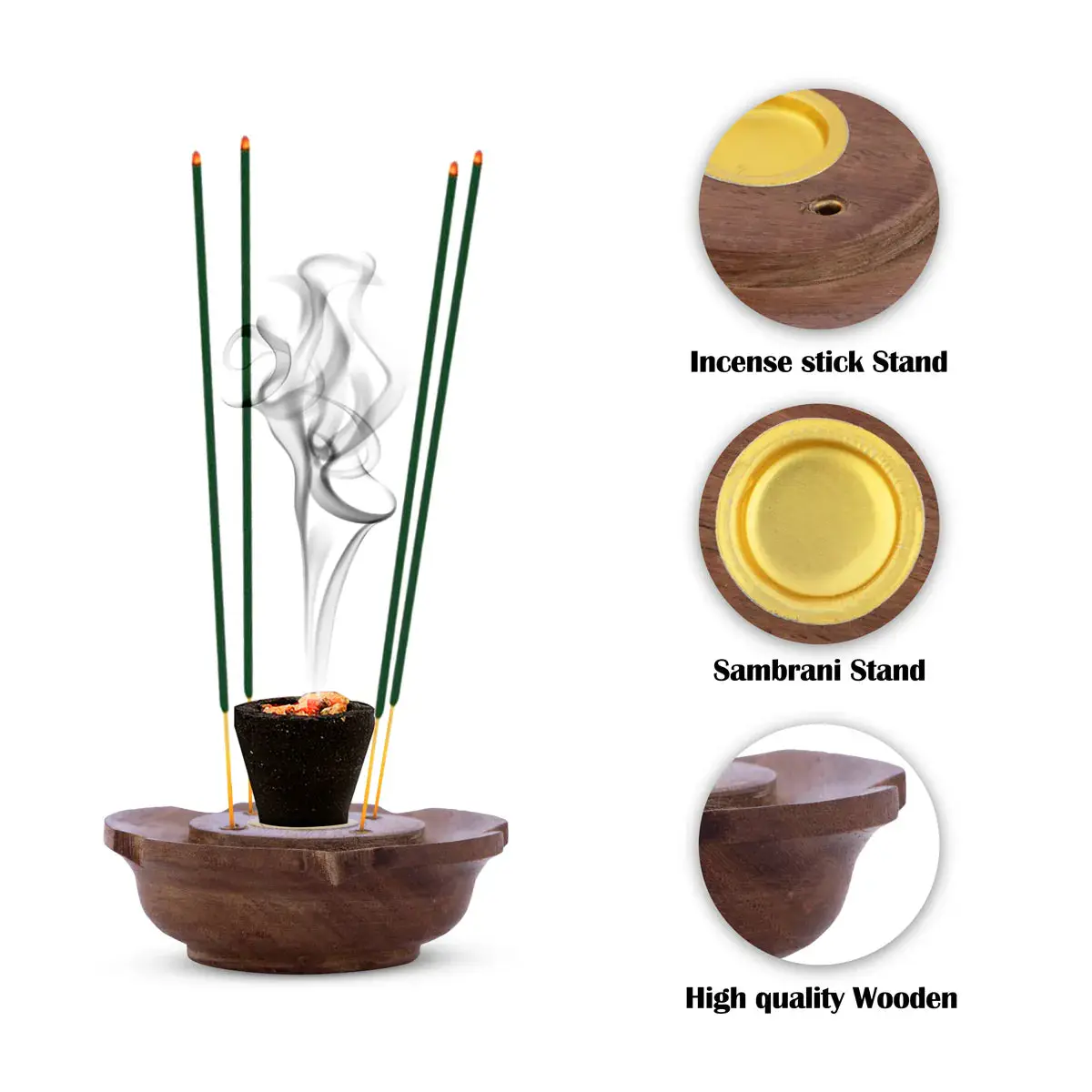 Dhoop Stand - 1 x 3 Inches | Wooden Dhoop Holder/ Agarbatti Stand for Pooja