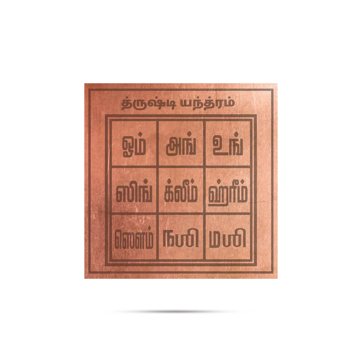 Drishti Yantram - 4 X 4 Inches | Copper Tamil Thrusti Yantra/ Evil Eye Remedy Yantram For Home And Office Use
