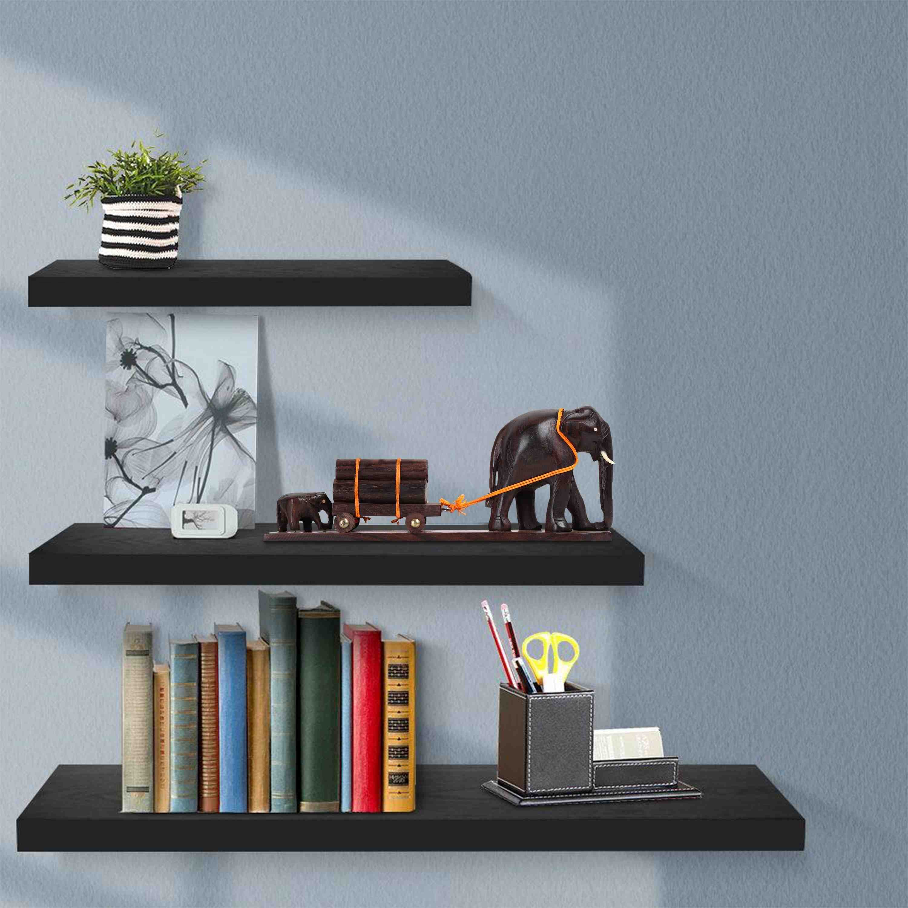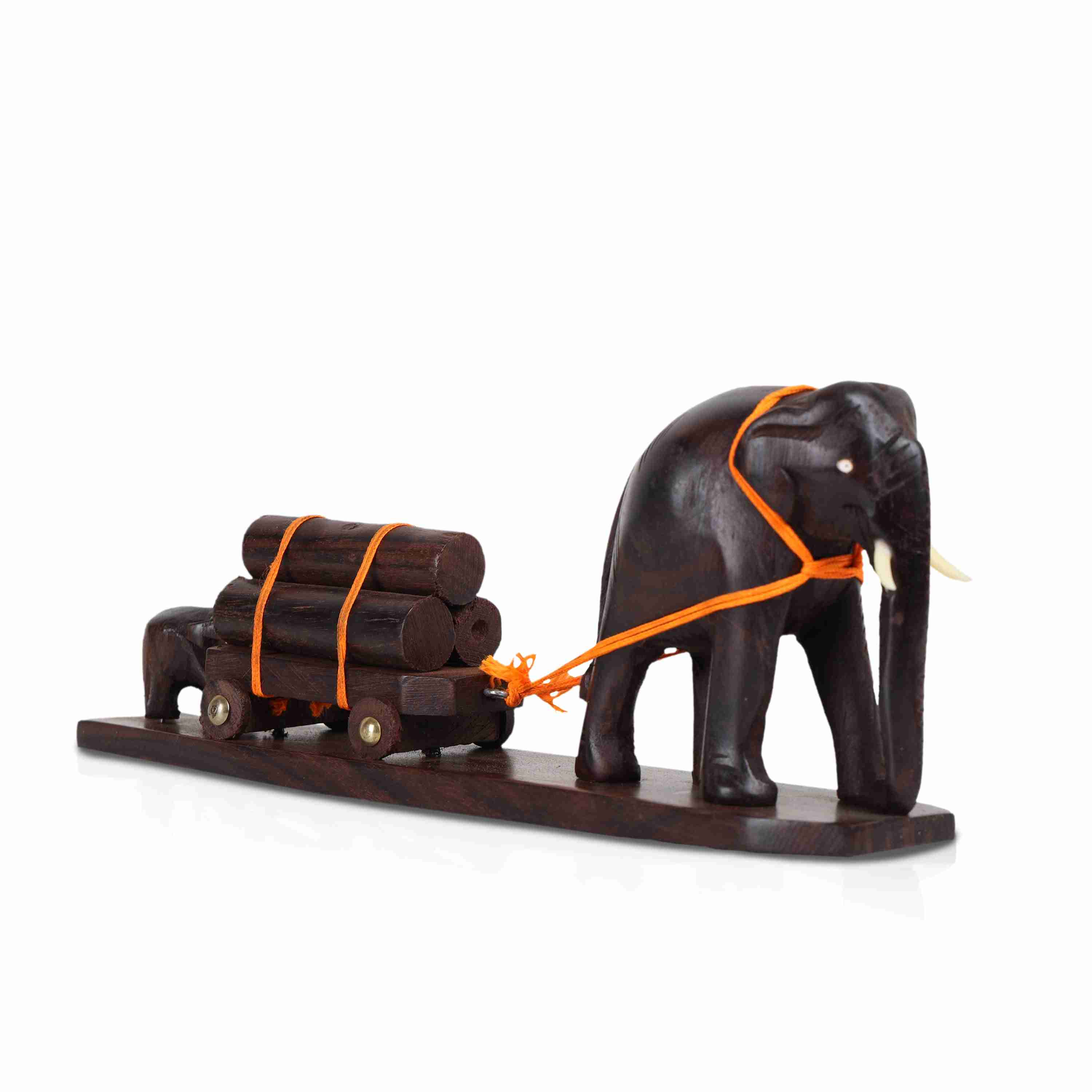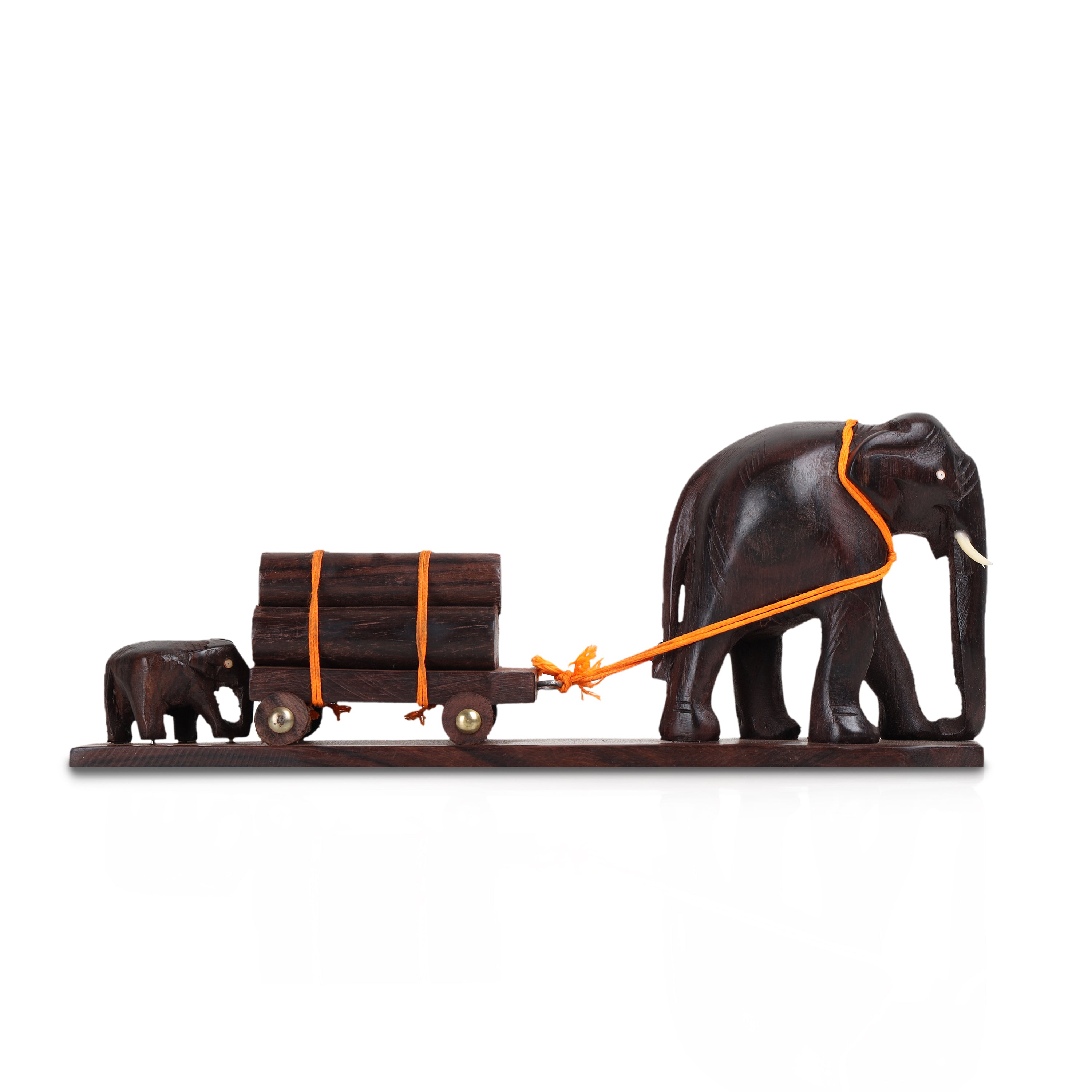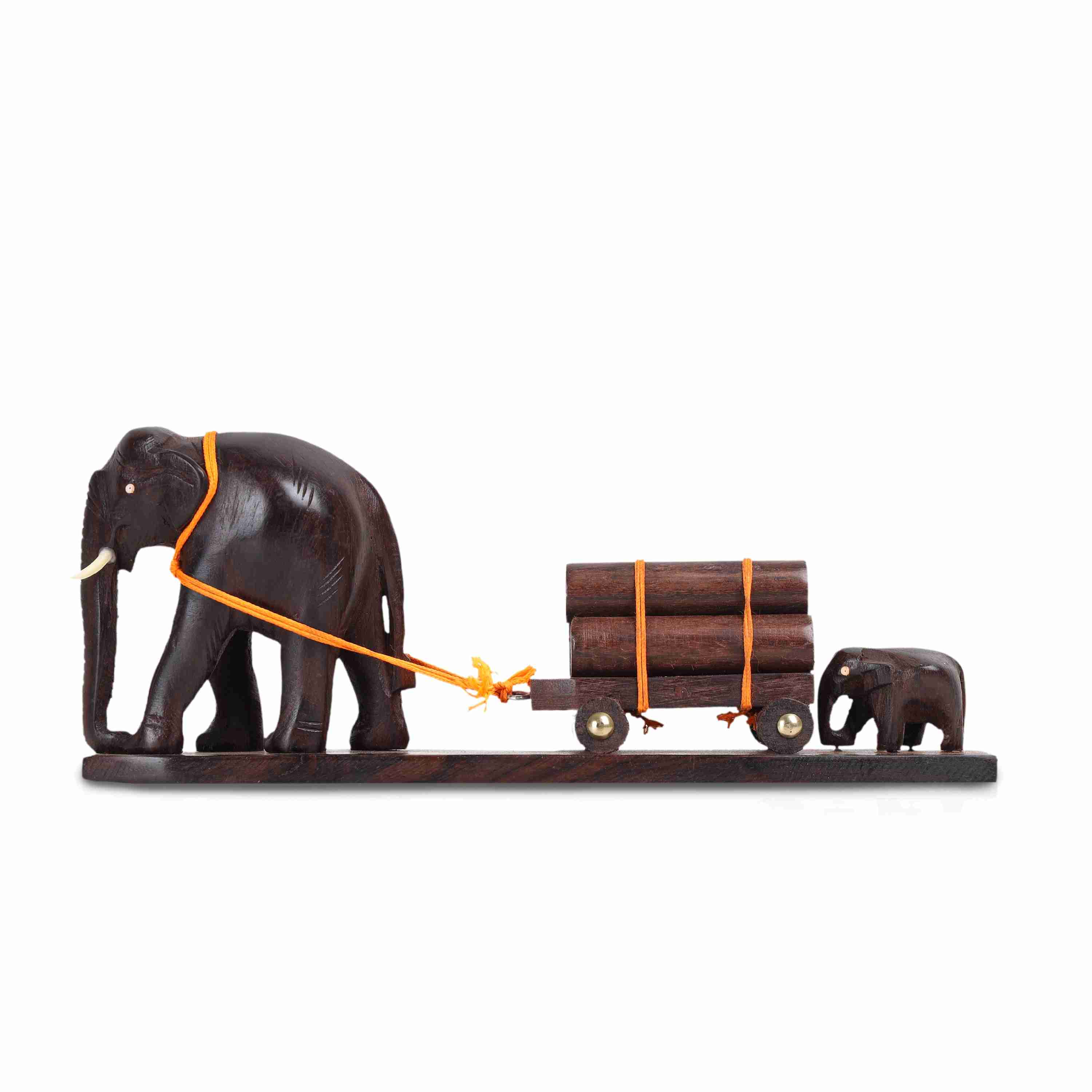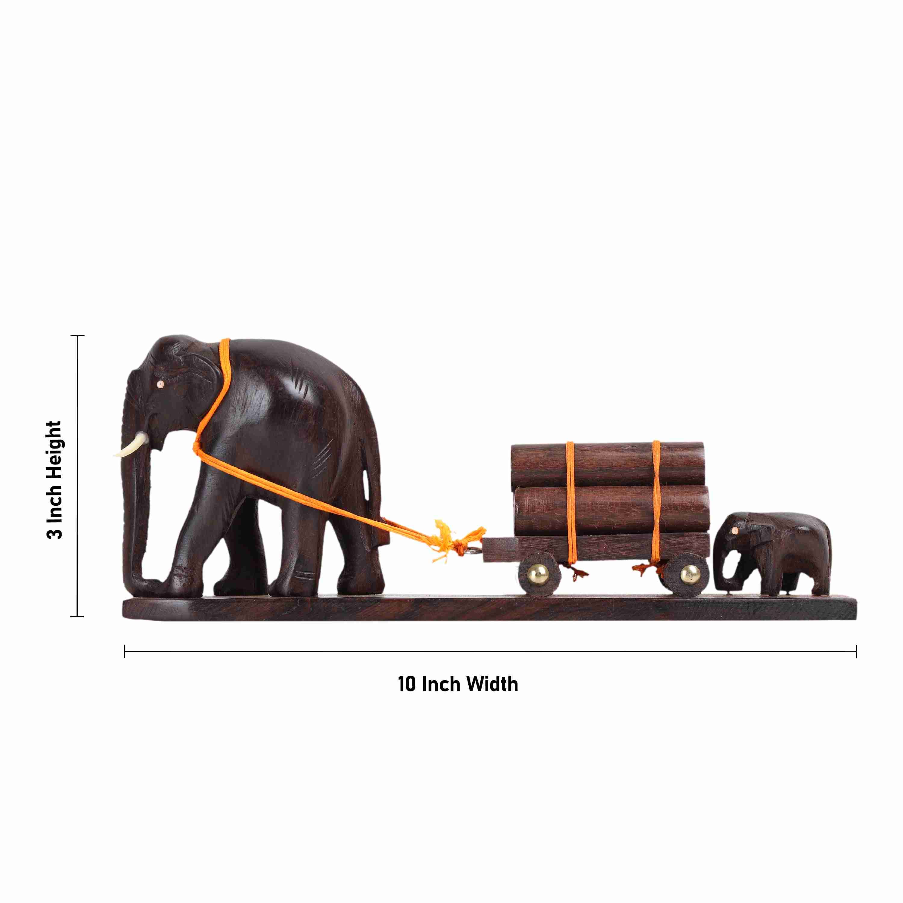 Elephant Cart - 3 Inches | Wooden Elephant Statue/ Elephant Idol for Home Decor