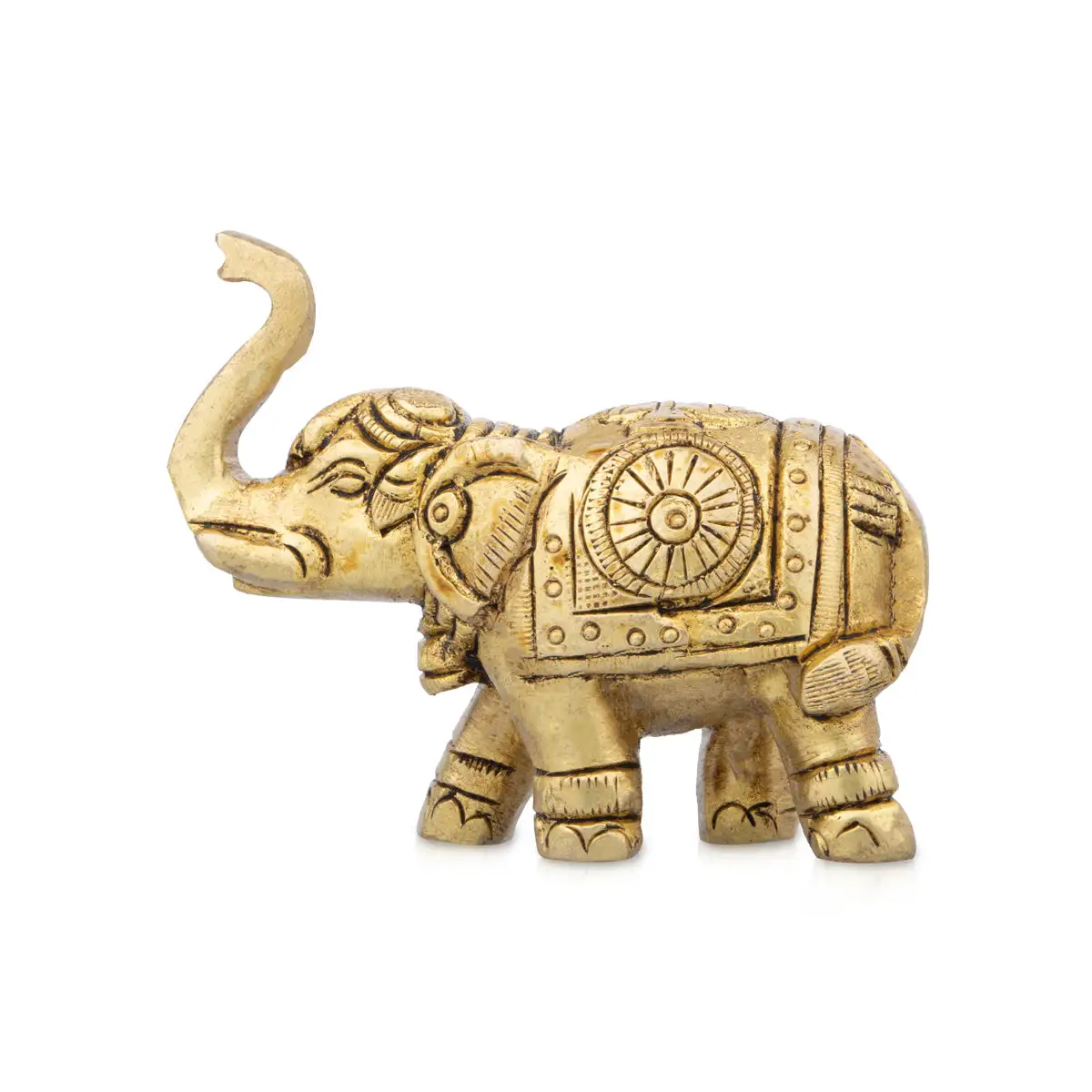 Elephant Statue - 2 x 2.5 Inches | Elephant Figurine/ Antique Brass Idol for Home Decor/ 315 Gms Approx