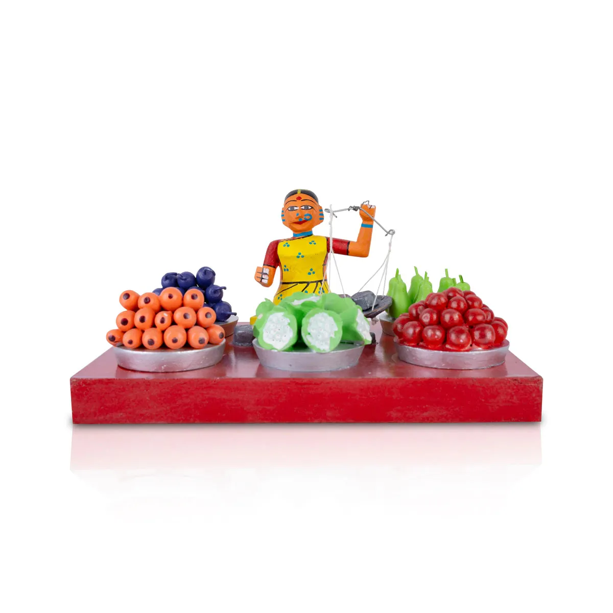 Fruit & Vegetable Seller Kondapalli Toy - 5 x 9.5 Inches | Wooden Statue/ Handmade Showpiece for Home Decor