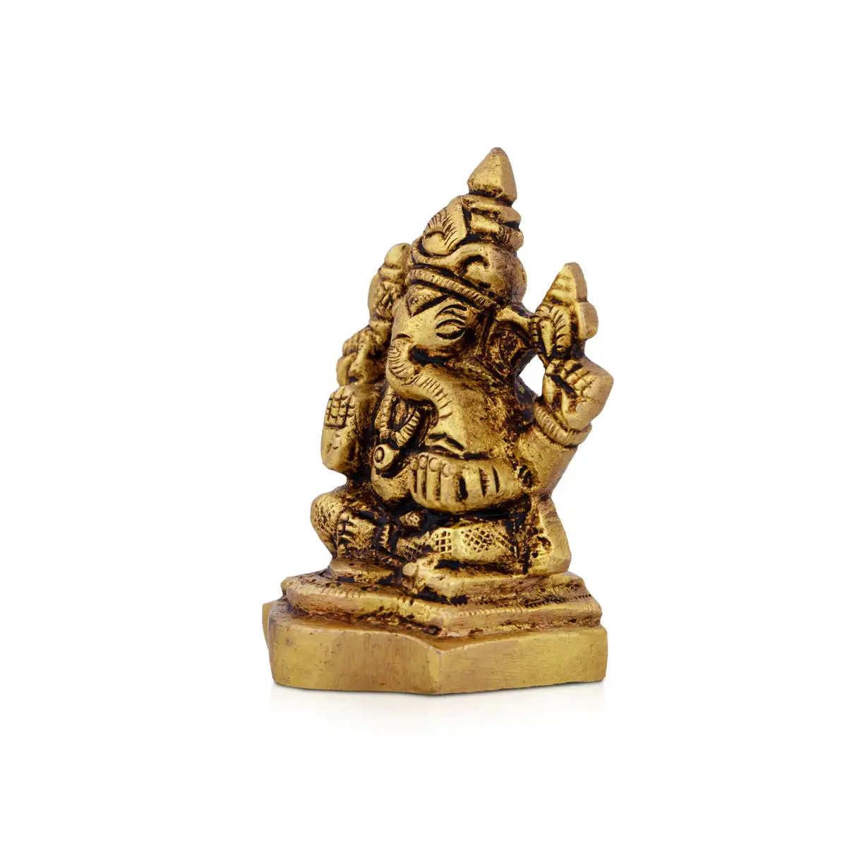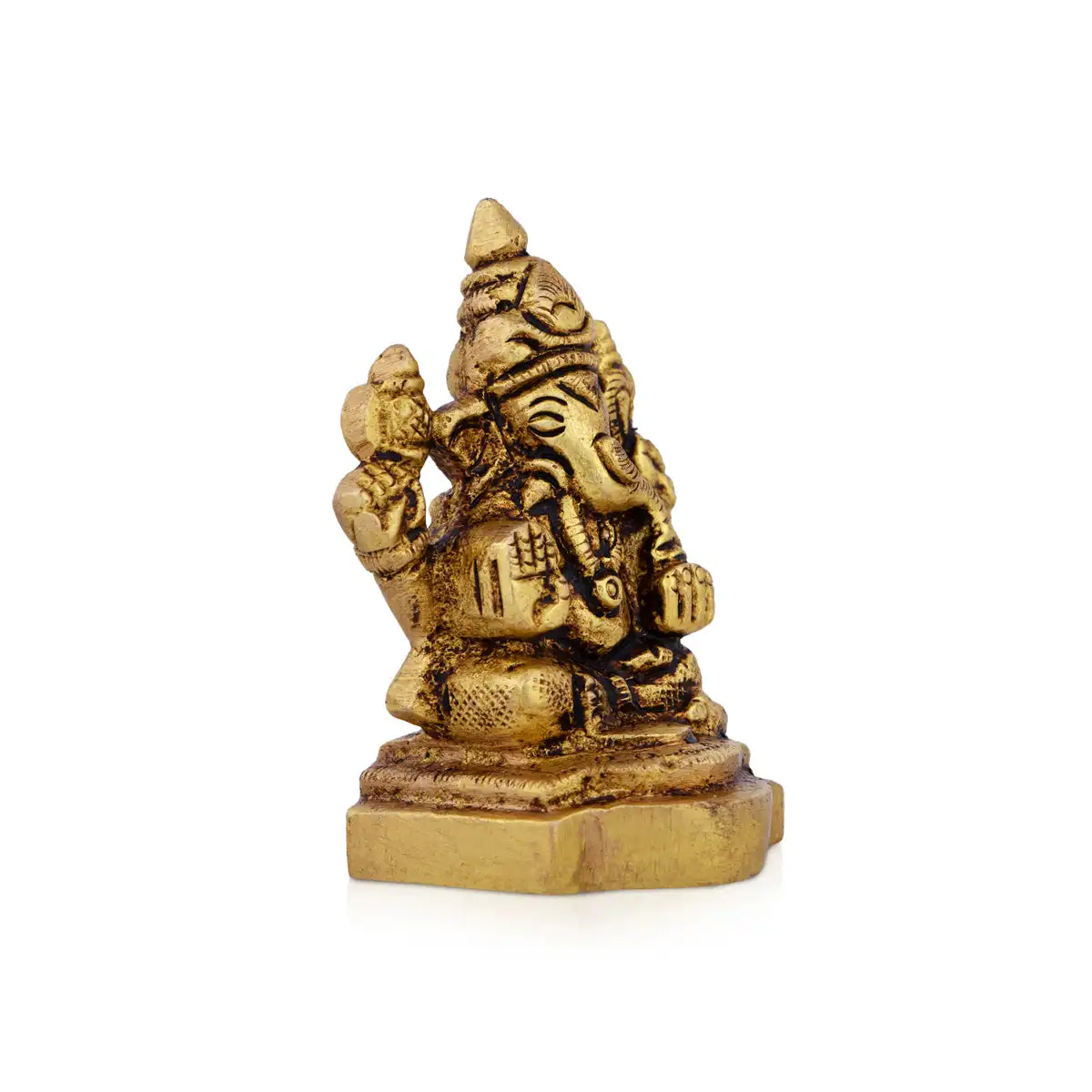 Ganesh Murti - 2 x 1.5 Inches | Ganapati Idol/ Antique Brass Idol/ Vinayagar Statue for Pooja/ 160 Gms Approx