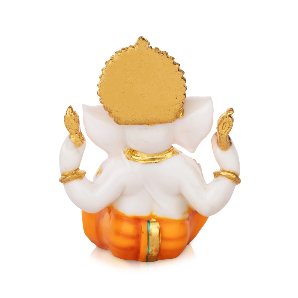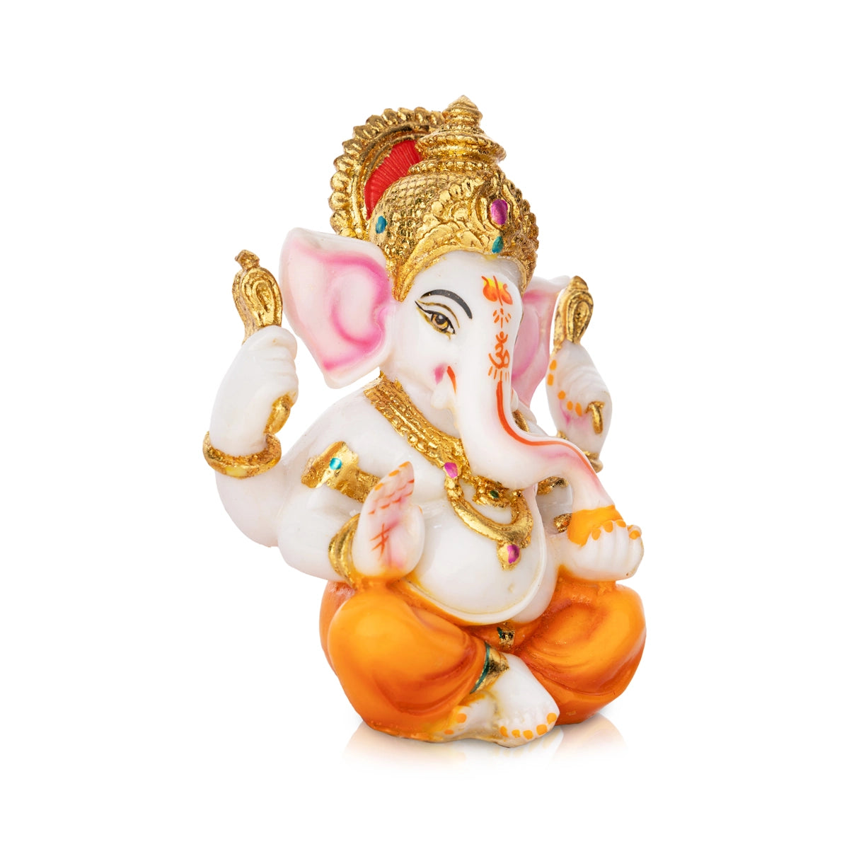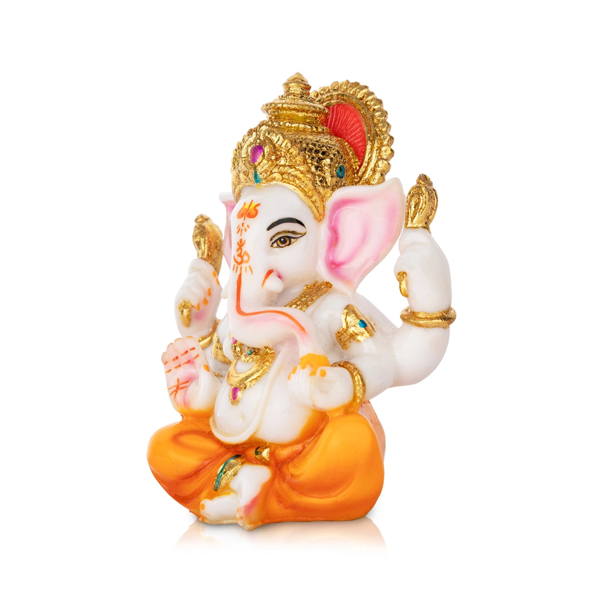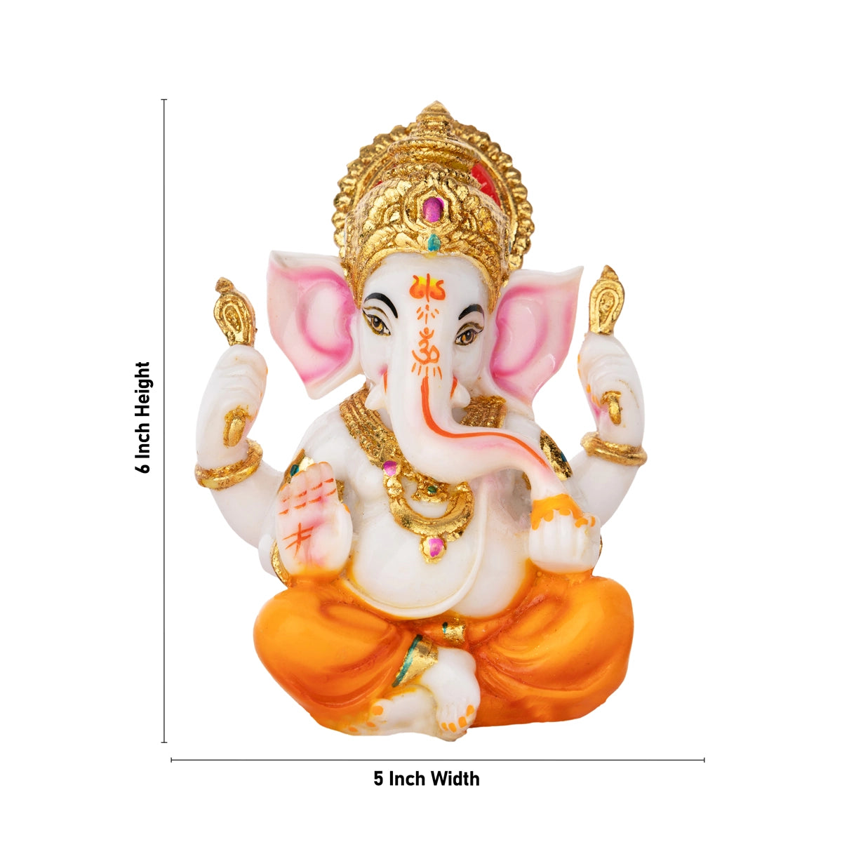 Ganesh Murti - 6 x 5 Inches | Marble Dust Murti/ Painted Vinayaka Statue/ Sitting Ganpati Murti for Worship